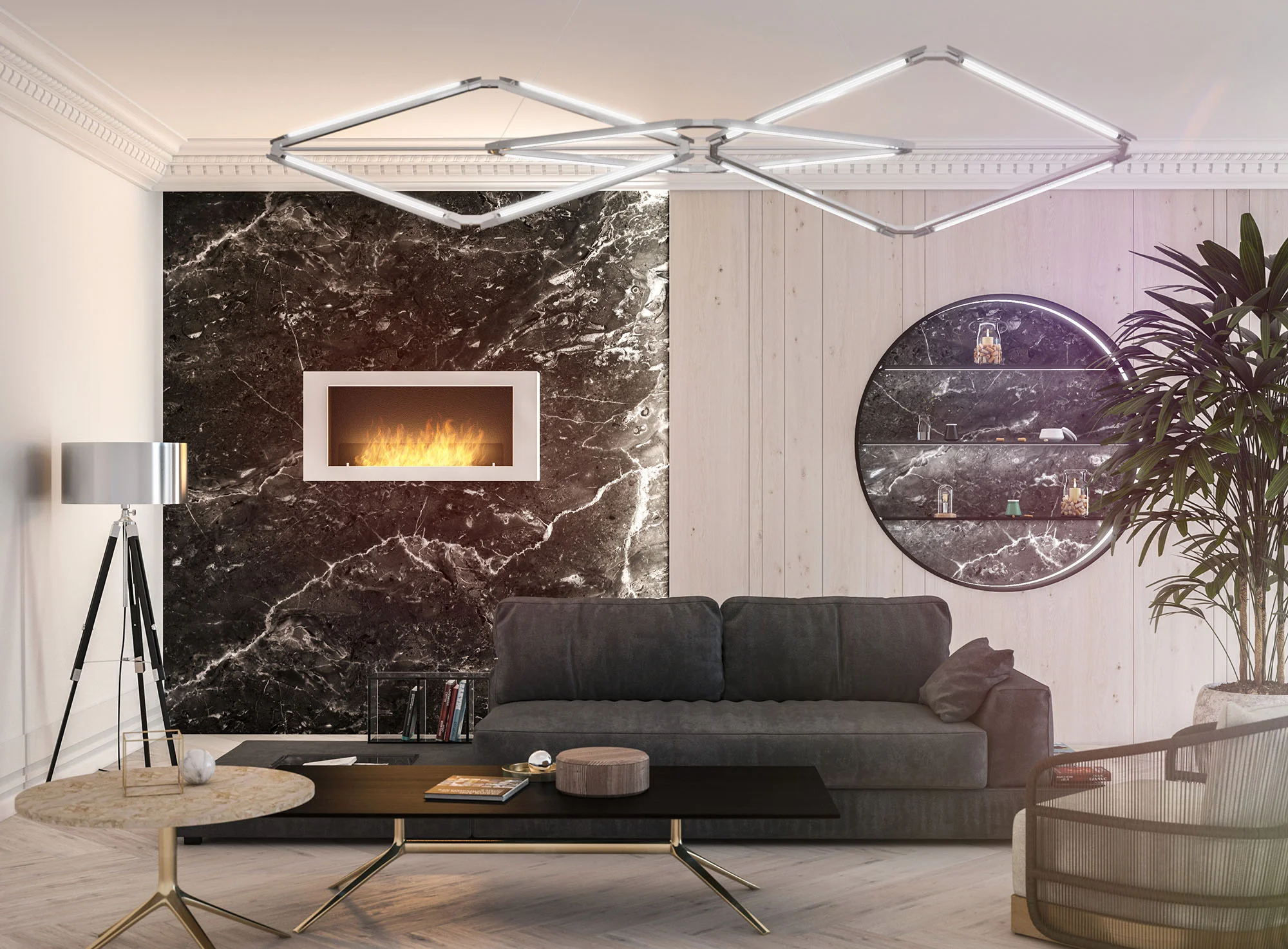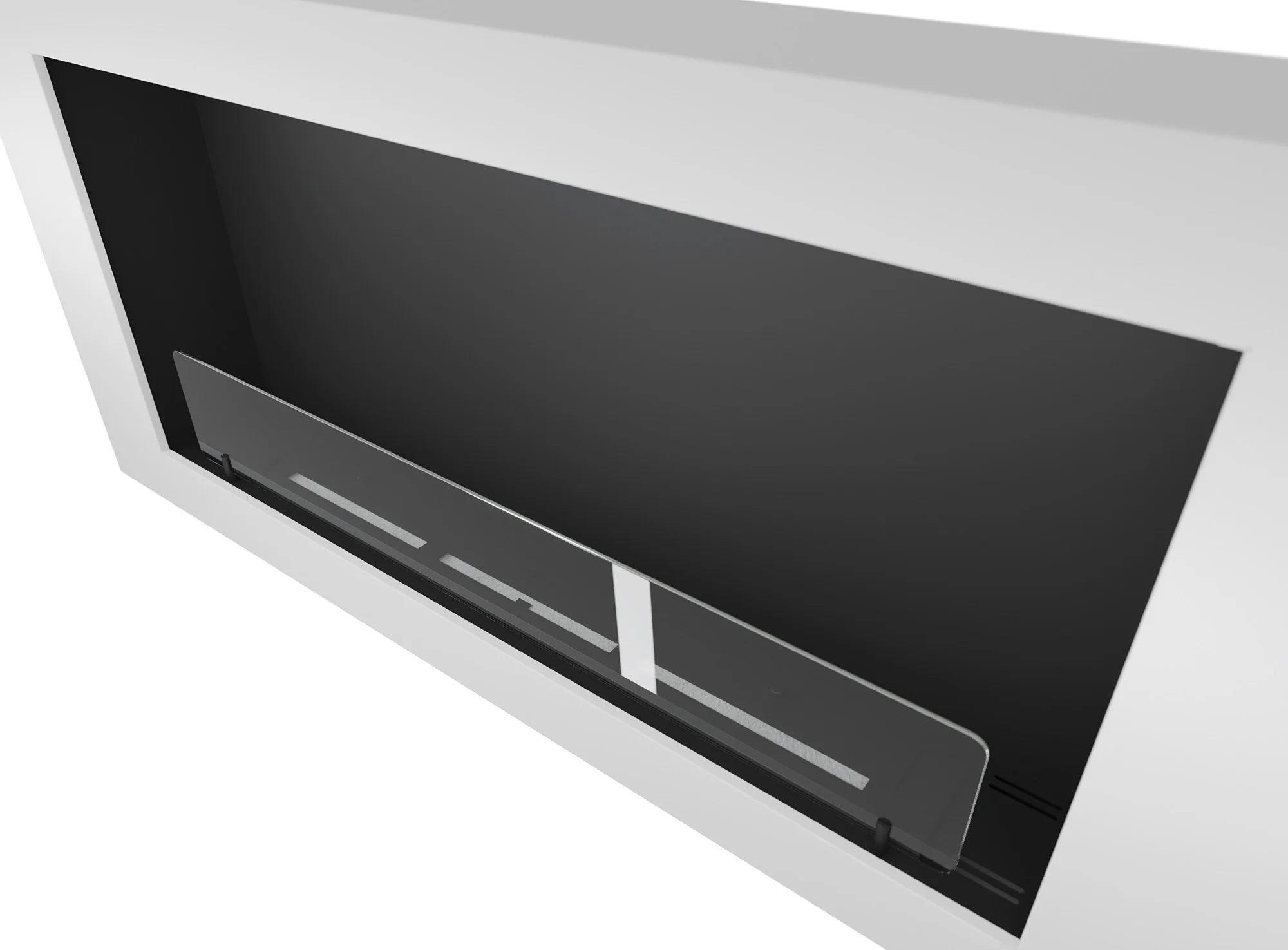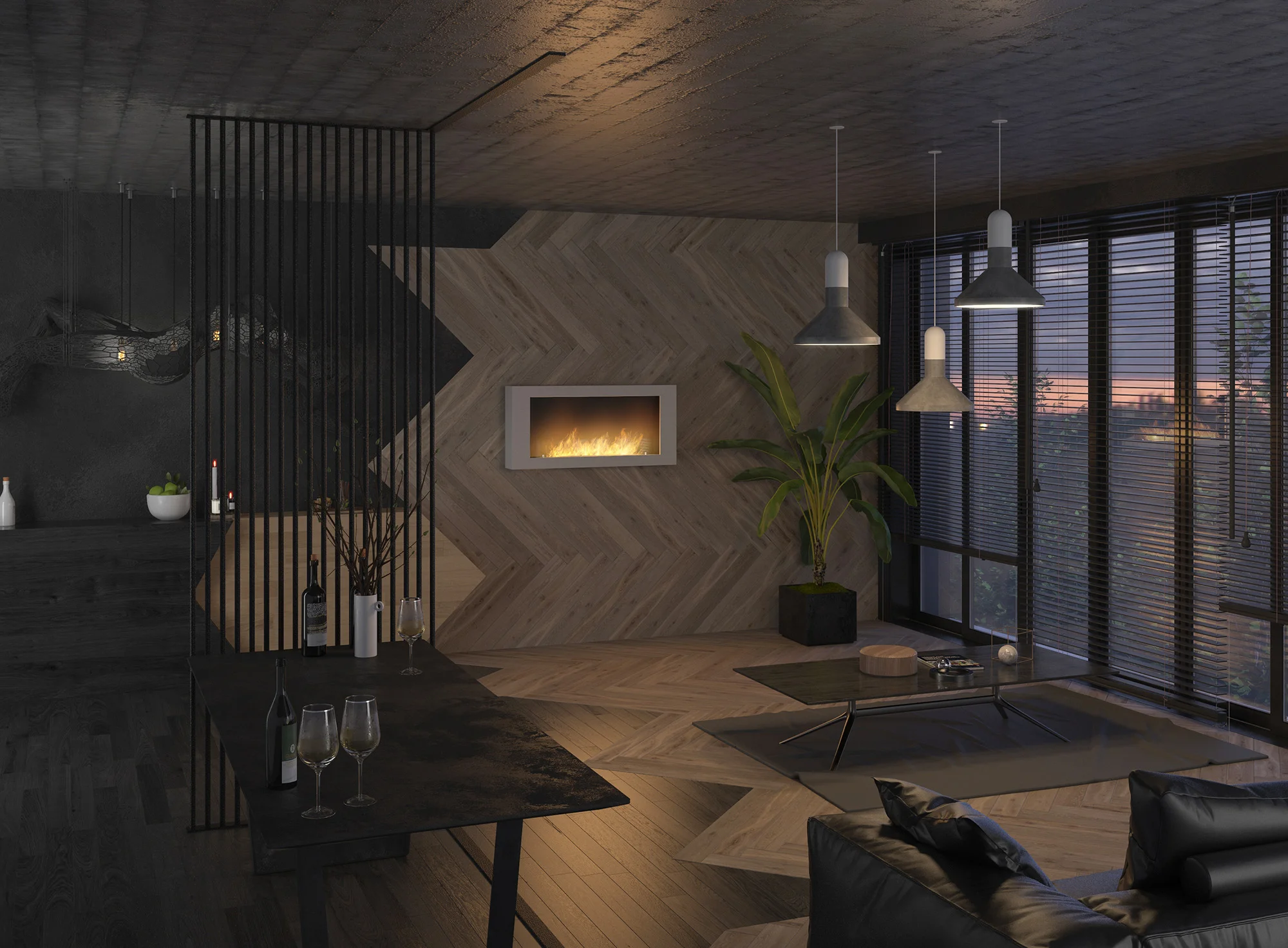 Dzięki prostej, prostokątnej formie biokominek do zawieszenia pasuje do różnych aranżacji. Może stanowić element dekoracyjny w salonie, sypialni lub biurze.