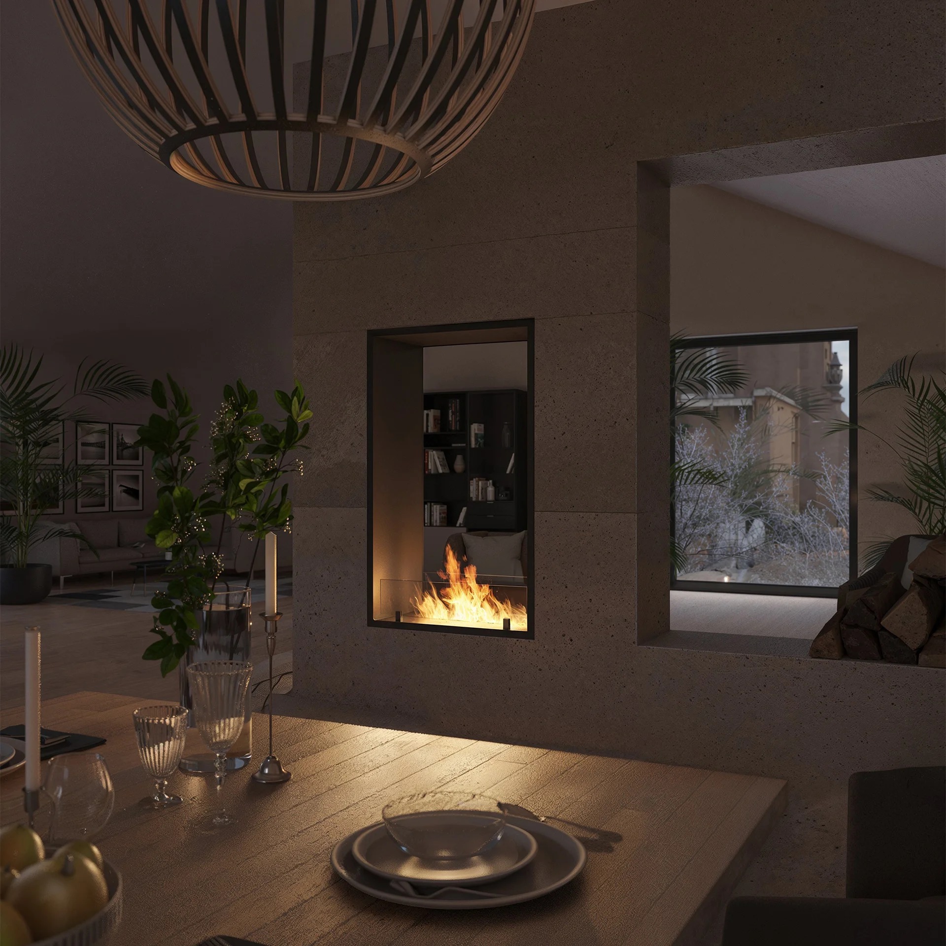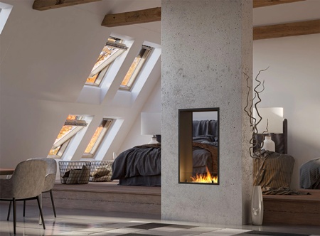Model biokominka wnękowego 2Side 1000 Slim Vertical został opracowany z myślą o montażu w ścianie i wykorzystaniu ognia jako elementu przestrzennego. Dwustronna konstrukcja pozwala oglądać płomień z dwóch pomieszczeń jednocześnie, co czyni go praktycznym rozwiązaniem w salonach połączonych z jadalnią lub strefą relaksu. Smukła forma i czarne ramki podkreślają nowoczesny charakter projektu.