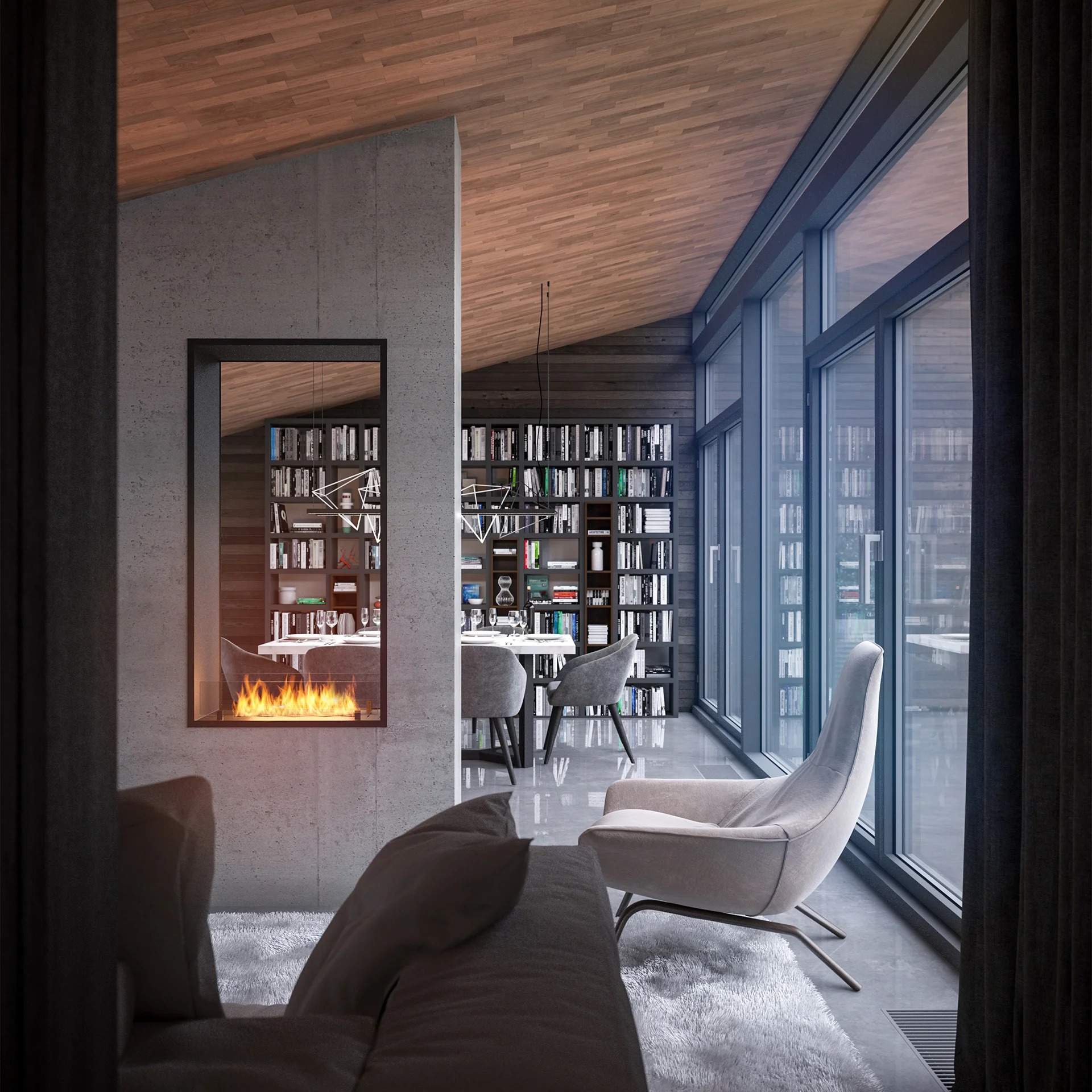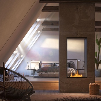 Model biokominka wnękowego 2Side 1400 Slim Vertical łączy w sobie funkcjonalność i prostą formę. Konstrukcja typu „2Side” pozwala oglądać płomień z dwóch stron, co umożliwia zastosowanie kominka jako elementu dzielącego przestrzeń. Wąskie czarne ramki podkreślają pionowy układ i wpasowują się w nowoczesne aranżacje.