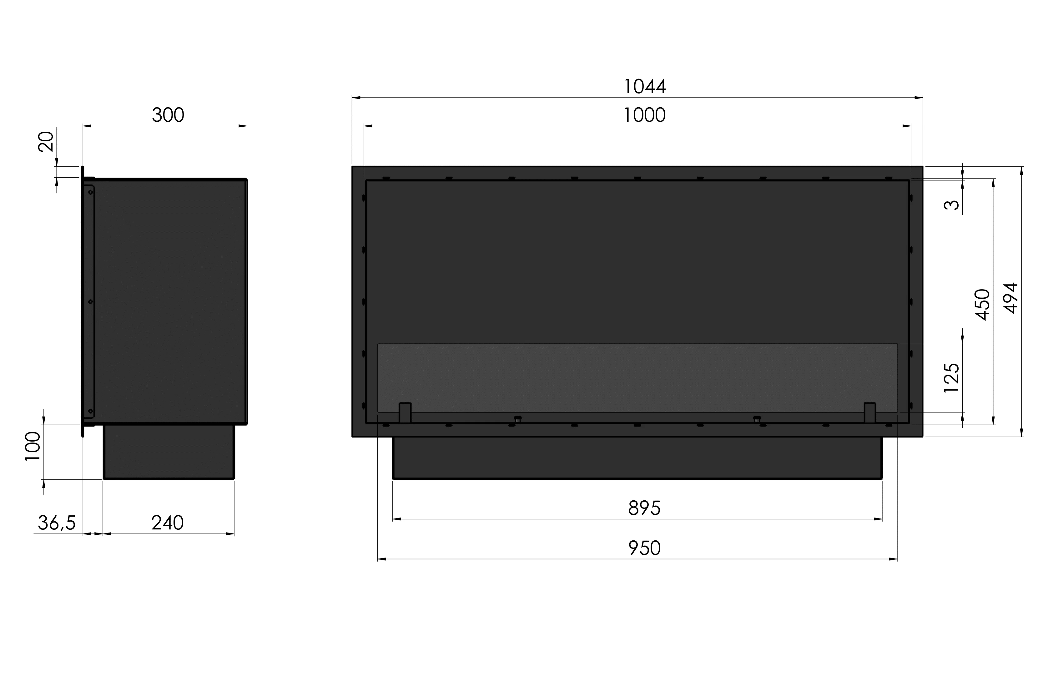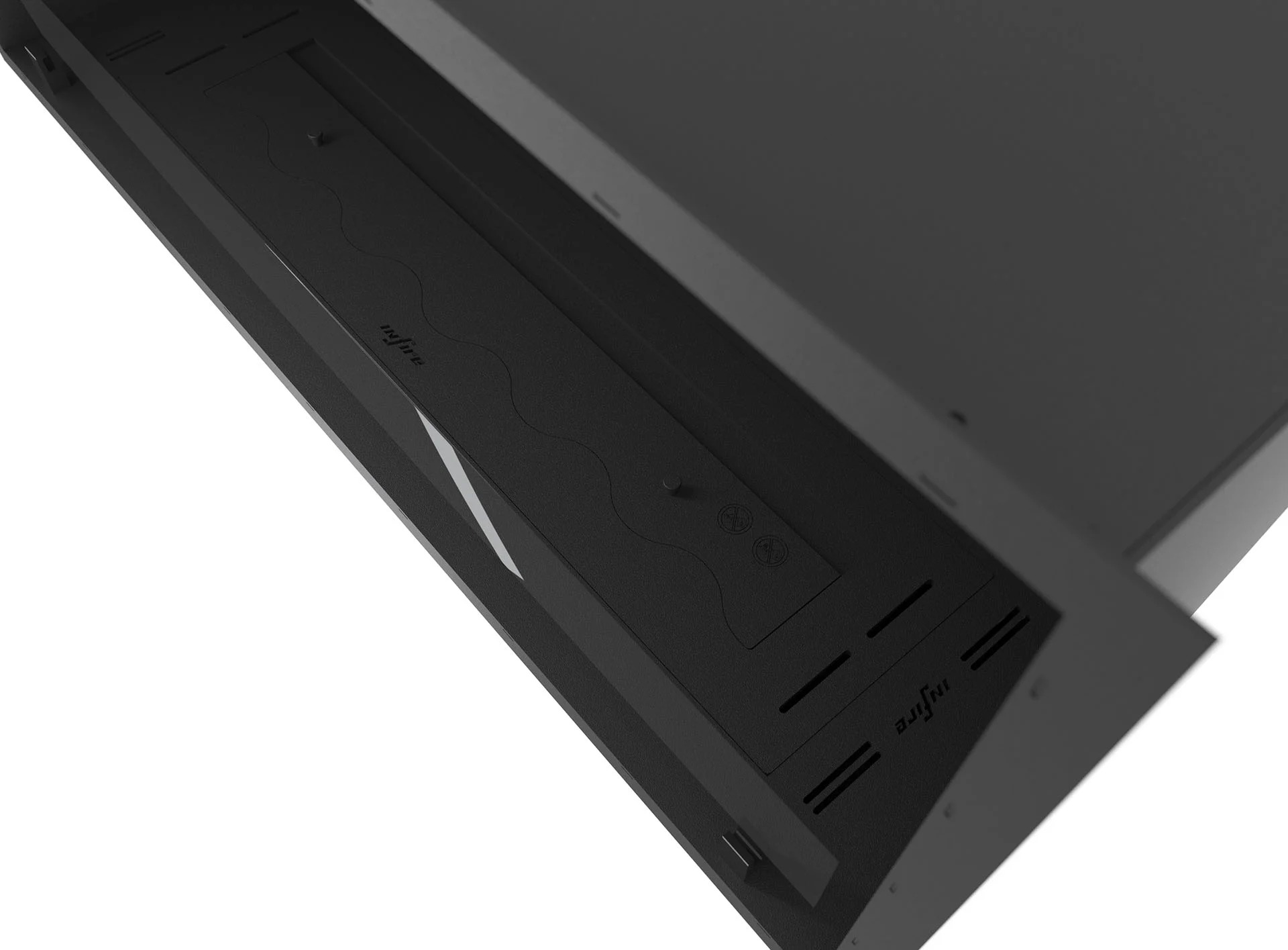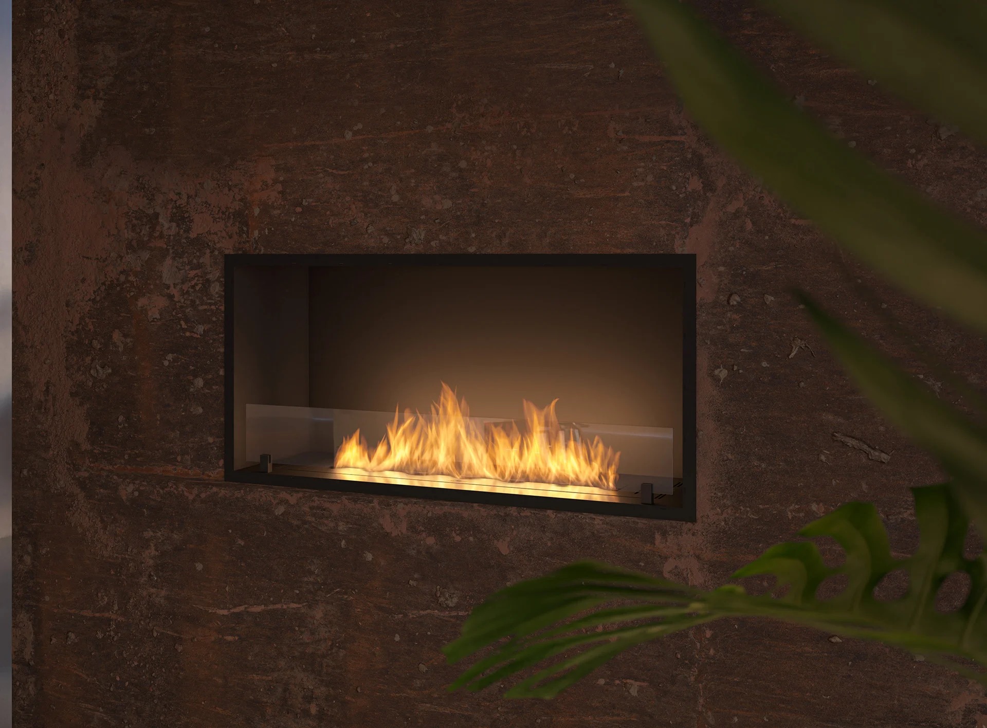 To biokominek czarny o minimalistycznej formie, w całości utrzymany w jednolitym kolorze. Smukła rama z wąskim profilem nadaje mu nowoczesny charakter i pozwala na harmonijną integrację ze ścianą. Model przeznaczony jest do montażu wnękowego i nie wymaga komina ani instalacji wentylacyjnej, co czyni go prostym w montażu i użytkowaniu.