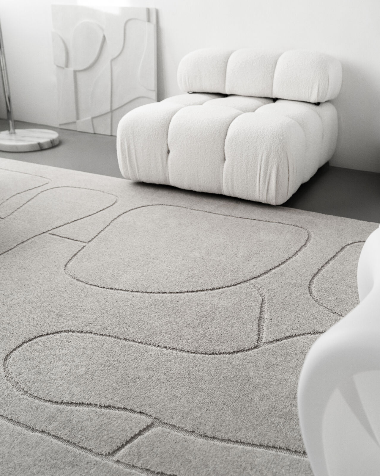 Dywan Agnella Morphic Morphic w jasnoszarym odcieniu to propozycja dla tych, którzy cenią sobie spokojne, stonowane wnętrza o nieoczywistej fakturze i unikalnym wzornictwie. Jego organiczny, delikatny wzór przypomina nieregularne, naturalne kształty, jakby stworzone przez samą naturę – kręte linie i formy przywodzą na myśl krajobrazy widziane z lotu ptaka lub naturalne formacje skalne. To dywan, który nie tylko zdobi, ale także uspokaja i nadaje przestrzeni harmonii. Wprowadza do wnętrza lekkość i subtelność, dzięki którym pomieszczenie nabiera niepowtarzalnego charakteru.