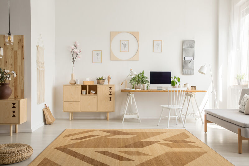 Na dywanie FD Standard Kanas Krem króluje harmonia linii i kształtów. Jego geometryczny wzór, złożony z ostro zarysowanych, asymetrycznych figur, przypomina wizję nowoczesnej metropolii – to jak patrzenie z lotu ptaka na uporządkowane ulice i wieżowce, które układają się w zaskakująco spójną całość. Ciepły kremowy odcień i różnorodne faktury w odcieniach beżu nadają dywanowi wyjątkowego charakteru, idealnie balansując pomiędzy nowoczesnością a klasyczną przytulnością.