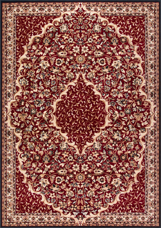 Głęboki bordowy kolor w połączeniu ze złocistymi detalami doskonale pasuje do wnętrz o klasycznym wystroju, a także jako kontrast w nowoczesnych aranżacjach. Dywan ten wprowadza do pomieszczenia ciepło i elegancję, sprawiając, że staje się ono miejscem sprzyjającym relaksowi.