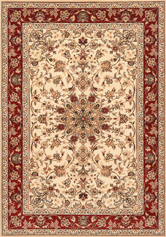 Bez względu na to, gdzie umieścisz ten dywan – w sypialni, salonie czy jadalni – jego klasyczne wzory, delikatne kolory i wyraźne bordowe obramowanie dodadzą Twojemu wnętrzu ciepła i przyjemnej atmosfery. To doskonały wybór do wnętrz, które potrzebują spokojnego i przyjaznego akcentu, podkreślającego ich wyjątkowy styl.