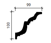 Przy wymiarach 99 × 100 mm listwa stanowi wyraźny detal sufitowy i sprawdzi się w pomieszczeniach, gdzie gzyms ma pełnić funkcję dekoracyjną, również na zaokrąglonych ścianach.