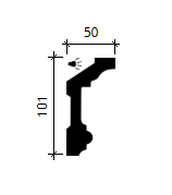 Przy wymiarach 50 × 101 mm listwa daje mocniejszy efekt od strony ściany, zachowując wąską linię przy suficie. Sprawdzi się przy kolumnach, półokrągłych ścianach i w pomieszczeniach z wyraźną krzywizną.