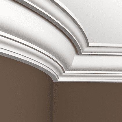 Model przeznaczony do wysokich wnętrz: salonów, klatek schodowych, sal restauracyjnych czy przestrzeni komercyjnych. Wersja FLEX umożliwia montaż na ścianach wklęsłych i wypukłych, bez zaburzania ciągłości profilu. Rozwiązania Gaudi Decor dobrze sprawdzają się przy większych realizacjach wymagających szerokiej opaski sufitowej.