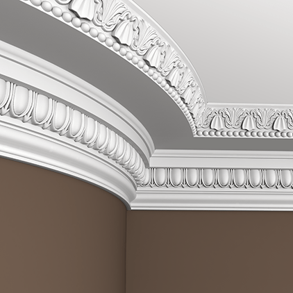 Przeznaczony do wysokich pomieszczeń – salonów, klatek schodowych, sal restauracyjnych, przestrzeni reprezentacyjnych. Wersja FLEX umożliwia montaż na ścianach wklęsłych i wypukłych bez przerywania ciągłości wzoru. W kolekcjach Gaudi Decor takie profile stosowane są w projektach inspirowanych klasyczną architekturą.