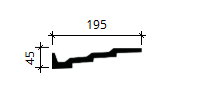 Szeroki, poziomy profil z wyraźnym wysunięciem w stronę sufitu i niskim zejściem na ścianę. Taki układ proporcji (195 mm x 45 mm) mocno akcentuje linię sufitu, jednocześnie nie zabierając optycznie wysokości pomieszczenia.