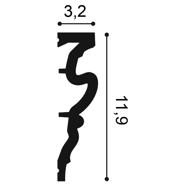 Element sztukaterii przeznaczony do tworzenia dużych paneli ściennych oraz wyraźnych podziałów powierzchni. Profil o wysokości 119 mm pozwala budować mocno zaznaczone ramy dekoracyjne i sprawdza się w aranżacjach, gdzie ściana ma być istotnym elementem wnętrza.