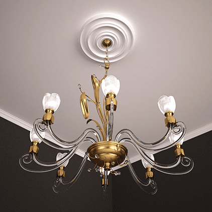 Model przeznaczony do montażu centralnego na suficie przy użyciu kleju montażowego. Ze względu na większą grubość należy dokładnie dopasować element do powierzchni. Przed instalacją trzeba przygotować otwór pod przewód oświetleniowy. Po zamocowaniu możliwe malowanie farbą wodną.