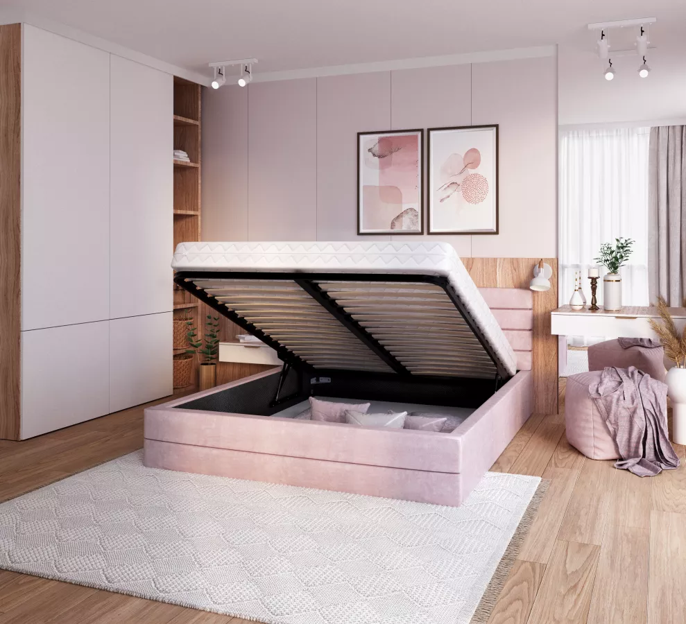 Łóżko tapicerowane -VIRGINIA TRINITY (PUDROWY RÓŻ) - 160 x 200