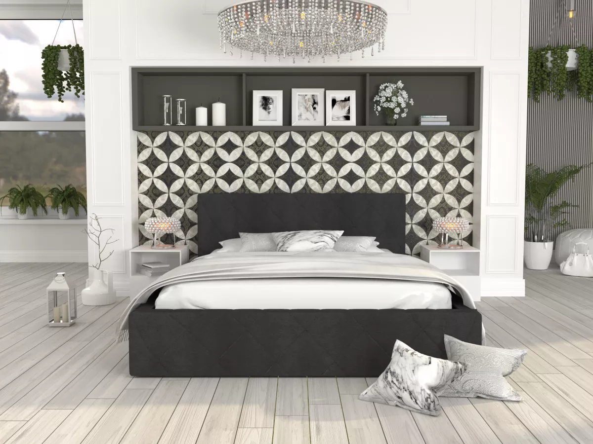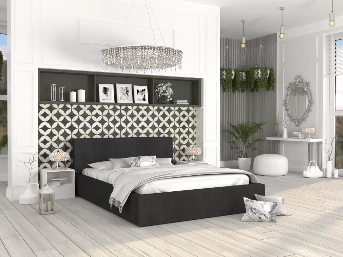 Odkryj piękno łóżka tapicerowanego CARO-TRINITY (CZARNY) - 140 x 200