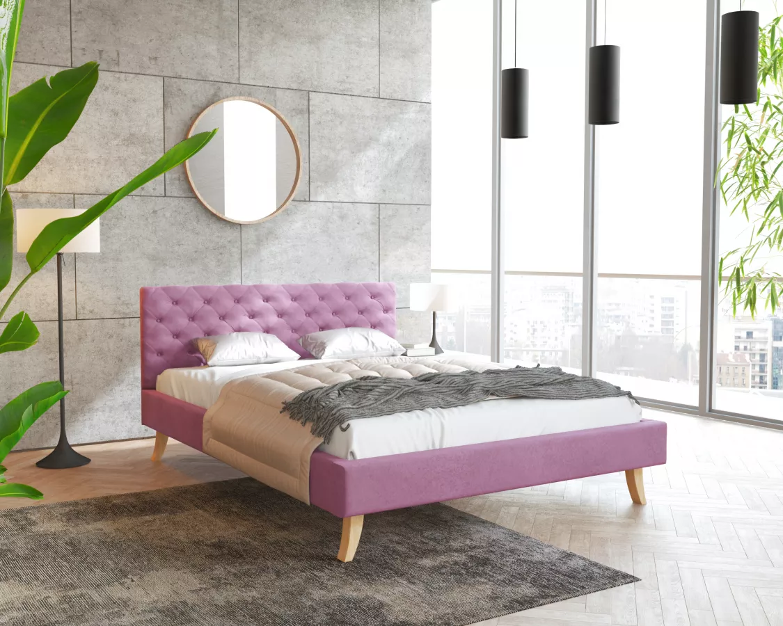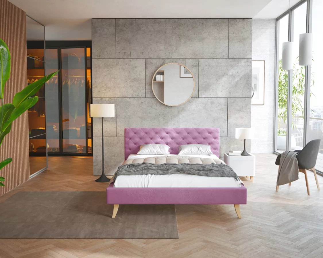 Łóżko tapicerowane KALIFORNIA- TRINITY w eleganckim fioletowym kolorze o wymiarach 120 x 200 cm to idealne rozwiązanie do Twojej sypialni. Jego ponadczasowy design oraz estetyczne wykończenie sprawiają, że staje się nie tylko meblem, ale również kluczowym elementem stylizacji wnętrza. Każda noc spędzona na tym łóżku zapewnia nie tylko komfortowy wypoczynek, ale również estetyczną przyjemność. Jego tapicerka jest starannie wyselekcjonowana, co przekłada się na wysoką jakość użytkowania i łatwość w utrzymaniu czystości. Dzięki solidnej konstrukcji, łóżko KALIFORNIA- TRINITY to inwestycja, która będzie służyć przez lata.