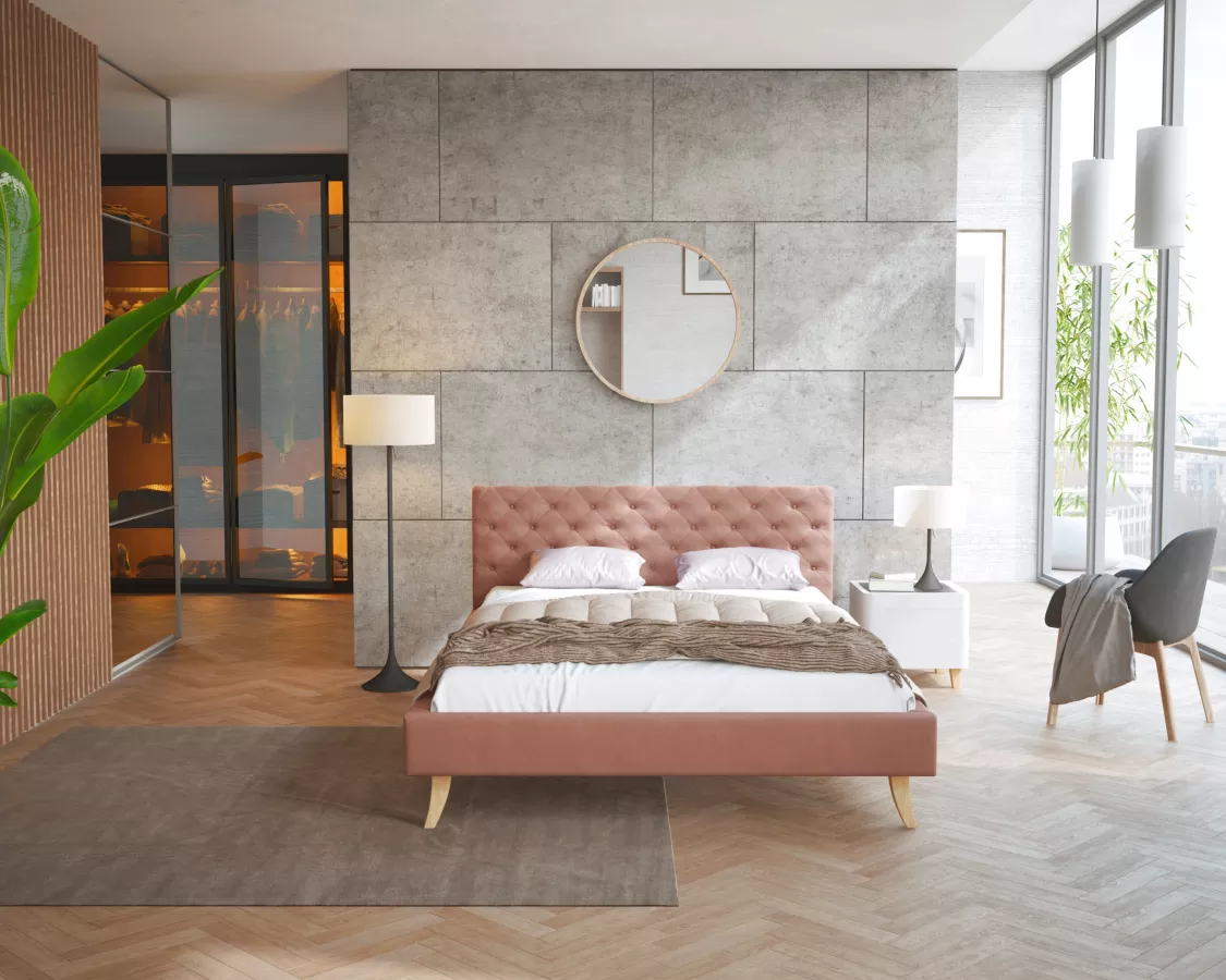 Łóżko tapicerowane KALIFORNIA- TRINITY w odcieniu mglistym różu to doskonałe połączenie elegancji i funkcjonalności, które wzbogaci każdą sypialnię. Jego wymiary 120 x 200 cm sprawiają, że jest idealnym wyborem zarówno do mniejszych, jak i większych przestrzeni. Dzięki ponadczasowemu designowi, to łóżko staje się punktem centralnym wnętrza, przyciągając wzrok i nadając mu wyjątkowego charakteru. Starannie dobrane materiały oraz wysokiej jakości tapicerka nie tylko zachwycają estetyką, ale również zapewniają odpowiednią trwałość na długie lata. Kalifornia– TRINITY to nie tylko piękny element dekoracyjny, ale przede wszystkim praktyczne rozwiązanie, które umożliwia komfortowy wypoczynek każdej nocy.
