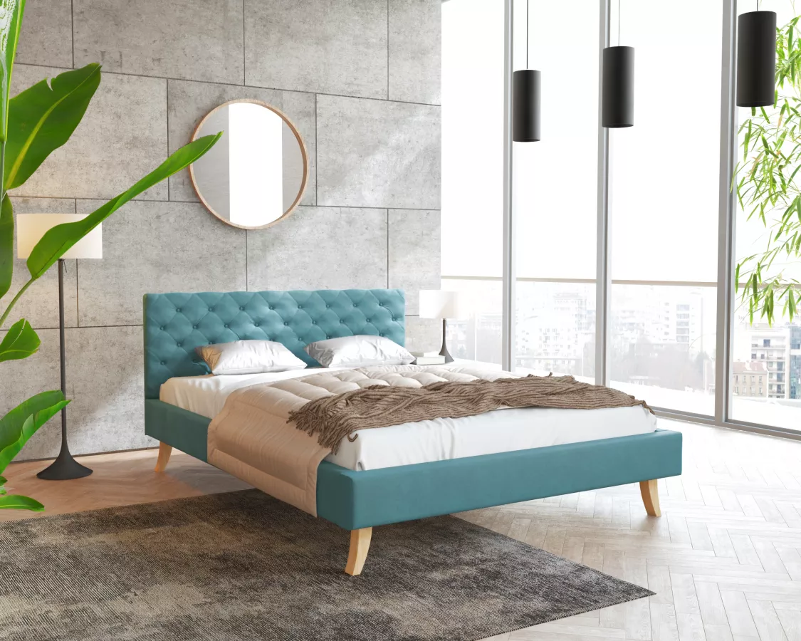 Łóżko tapicerowane KALIFORNIA- TRINITY w kolorze turkusowym o wymiarach 180 x 200 cm to idealny wybór dla każdej sypialni. Jego ponadczasowy design z pewnością przyciągnie uwagę i doda elegancji Twojemu wnętrzu. Dzięki doskonałemu wykończeniu nie tylko cieszy oko, ale także zapewnia wygodę podczas snu. Każda spędzona na tym łóżku noc to chwila relaksu i pełnego komfortu. Komfortowy materac i starannie dobrana tapicerka sprawią, że zasypianie stanie się prawdziwą przyjemnością. W takim otoczeniu możesz na nowo odkrywać wartości snu, budząc się z energią i dobrym nastrojem na każdy dzień.