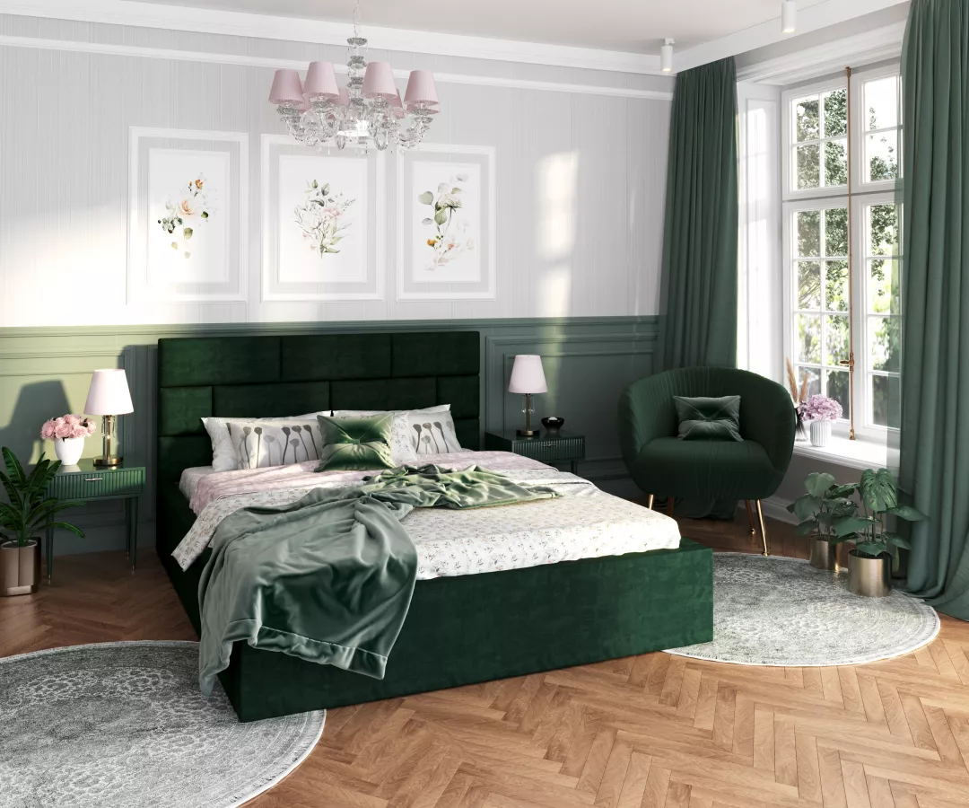 Łóżko tapicerowane PASADENA - TRINITY (butelkowa zieleń) - 160 x 200