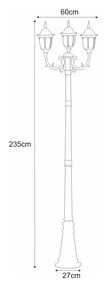 Imponujące oświetlenie ogrodu – trzyramienna latarnia zewnętrzna K-7007A2/3N CZARNY z serii VASCOCzy zdarzyło Ci się wracać wieczorem do domu, a podjazd lub ścieżka prowadząca do wejścia tonęły w półmroku? Brak odpowiedniego oświetlenia to częsty problem, który wpływa nie tylko na wygodę, ale i na bezpieczeństwo. Z pomocą przychodzi dekoracyjna latarnia ogrodowa K-7007A2/3N z kolekcji VASCO – propozycja dla tych, którzy chcą połączyć funkcjonalność z efektownym wyglądem. Dzięki swojej wysokości 235 cm oraz trzem źródłom światła na ozdobnych ramionach, lampa skutecznie rozświetli dużą przestrzeń – idealnie sprawdzi się przy bramie wjazdowej, głównej alei, tarasie czy przed wejściem do domu.