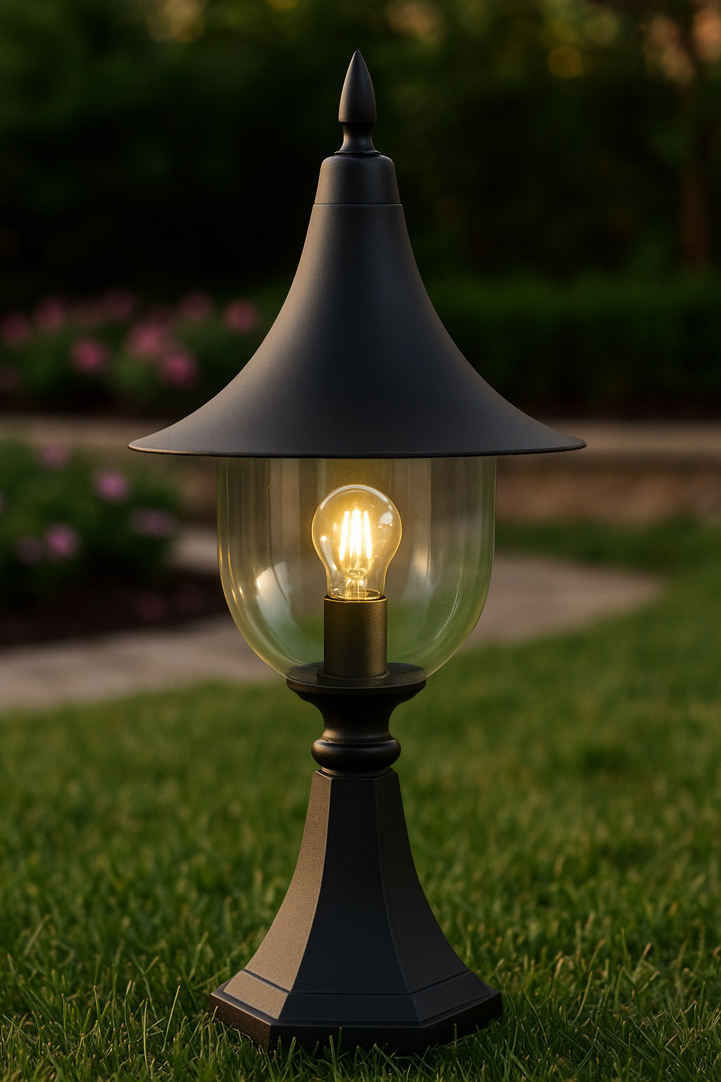 Klasyczna forma i praktyczne rozwiązaniaWykonana z trwałego metalu i odpornego tworzywa sztucznego, latarenka K-8133 zachwyca solidnością oraz dbałością o każdy detal. Jej czarna, matowa powierzchnia i subtelne zdobienia sprawiają, że świetnie komponuje się z architekturą klasyczną, rustykalną, jak i nowoczesną. Wysokość 53 cm oraz szerokość 26 cm czynią ją idealną do montażu przy ścieżkach ogrodowych, wejściach czy na rabatach. Dzięki zastosowaniu wymiennej żarówki E27 (max 15W LED) możesz łatwo dopasować barwę i moc światła do własnych preferencji – od nastrojowego ciepłego blasku po jaśniejsze światło techniczne. Co ważne, klosz w formie kapsuły zapewnia równomierne rozproszenie światła, a stopień ochrony IP44 gwarantuje odporność na deszcz, pył i zmienne warunki atmosferyczne.Styl, który nie wychodzi z modyJedną z największych zalet serii BOSTON jest jej ponadczasowy design. Strzeliste wykończenia i dekoracyjna podstawa przyciągają wzrok, a głęboka czerń gwarantuje uniwersalność – pasuje niemal do każdego ogrodowego stylu. Dzięki temu lampy z tej serii nie tylko pełnią funkcję praktyczną, ale również podnoszą estetykę przestrzeni zewnętrznej. Co więcej, model K-8133 możesz uzupełnić o inne warianty z tej samej serii – np. latarnie dwuramienne, kinkiety czy lampy wiszące – i stworzyć spójny system oświetlenia, który wprowadzi harmonię i elegancję wokół Twojego domu.