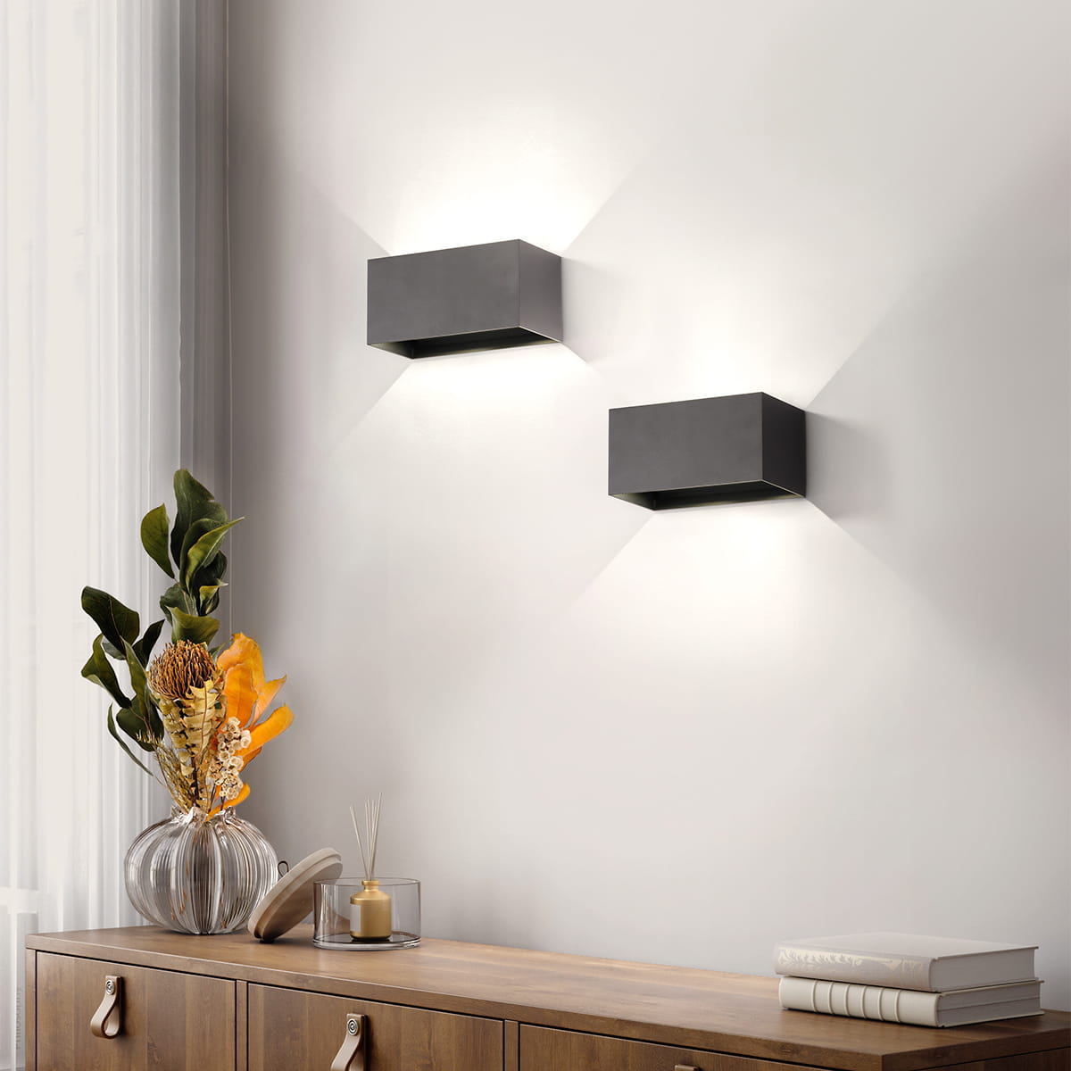 Lampa ścienna Wallo Fischer&Honsel LED 4x3W w odcieniu piaskowo-czarnym to idealne rozwiązanie dla osób, które pragną wprowadzić nowoczesny styl do swojego ogrodu czy tarasu. Wykonana z wytrzymałego metalu, ta lampa nie tylko przyciąga wzrok, ale także zapewnia długotrwałość i odporność na warunki atmosferyczne. Oferując do 20 000 godzin żywotności, cztery źródła światła LED o mocy 3 W każde generują strumień świetlny wynoszący 1300 lumenów, co gwarantuje doskonałe oświetlenie nawet w najciemniejsze wieczory. Dzięki kompaktowym wymiarom (szerokość 20 cm, wysokość 10 cm) i wysunięciu od ściany wynoszącemu 10 cm, lampa doskonale komponuje się w różnych przestrzeniach. Dodatkowym atutem jest stopień ochrony IP44, co oznacza, że jest ona zabezpieczona przed zachlapaniem i cząstkami stałymi, co czyni ją idealnym wyborem do użytku na zewnątrz.