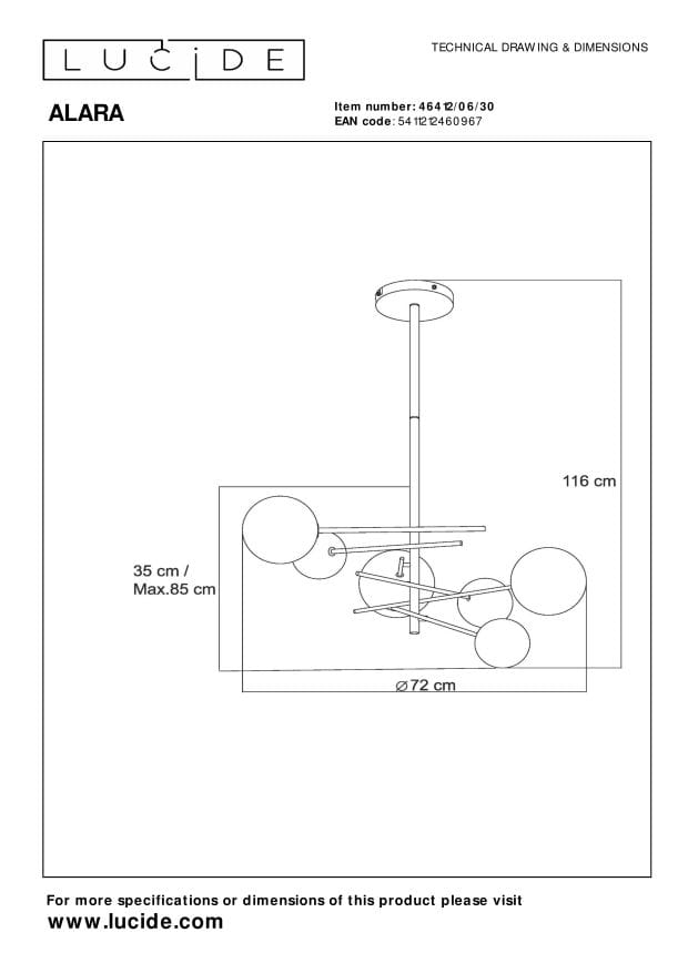 Lampy wiszące ALARA 46412/06/30 od renomowanego producenta Lucide to idealne połączenie elegancji i nowoczesności. Z wysokością wynoszącą 1200 mm oraz stylową średnicą klosza 140 mm, ten wyjątkowy model nie tylko oświetli przestrzeń, ale także stanie się jej ozdobą. Z sześcioma źródłami światła o maksymalnej mocy 2 W każde, dostarcza wystarczającej ilości jasności, tworząc przytulną atmosferę. Wybierz idealne miejsce na tę lampę, aby cieszyć się ciepłym, złotym światłem o temperaturze 2700 K, które wniesie do Twojego wnętrza wyjątkowy klimat.