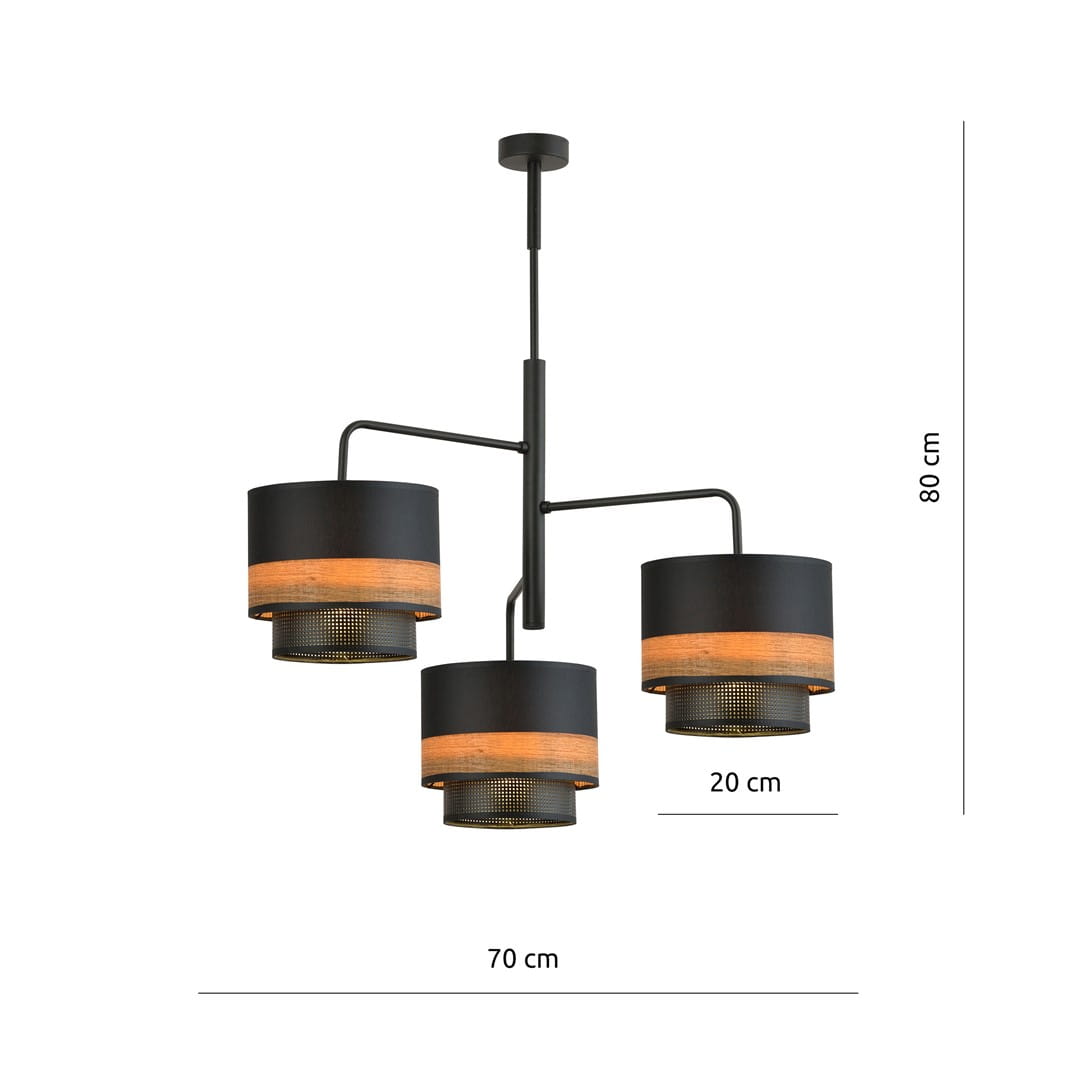 Lampa wisząca ARIGATO 3 WOOD BLACK to wyjątkowy element, który wniesie do Twojego wnętrza niepowtarzalny klimat. Charakteryzuje się oryginalnym abażurem w kolorze czarnym, który doskonale harmonizuje z drewnianymi akcentami, nadając przestrzeni przytulności i elegancji. Wykonana z najwyższej jakości materiałów w Polsce, lampa ta staje się prawdziwą ozdobą zarówno nowoczesnych, jak i tradycyjnych aranżacji. Z trzema źródłami światła zapewnia optymalne oświetlenie, tworząc przyjemną atmosferę w każdym pomieszczeniu.