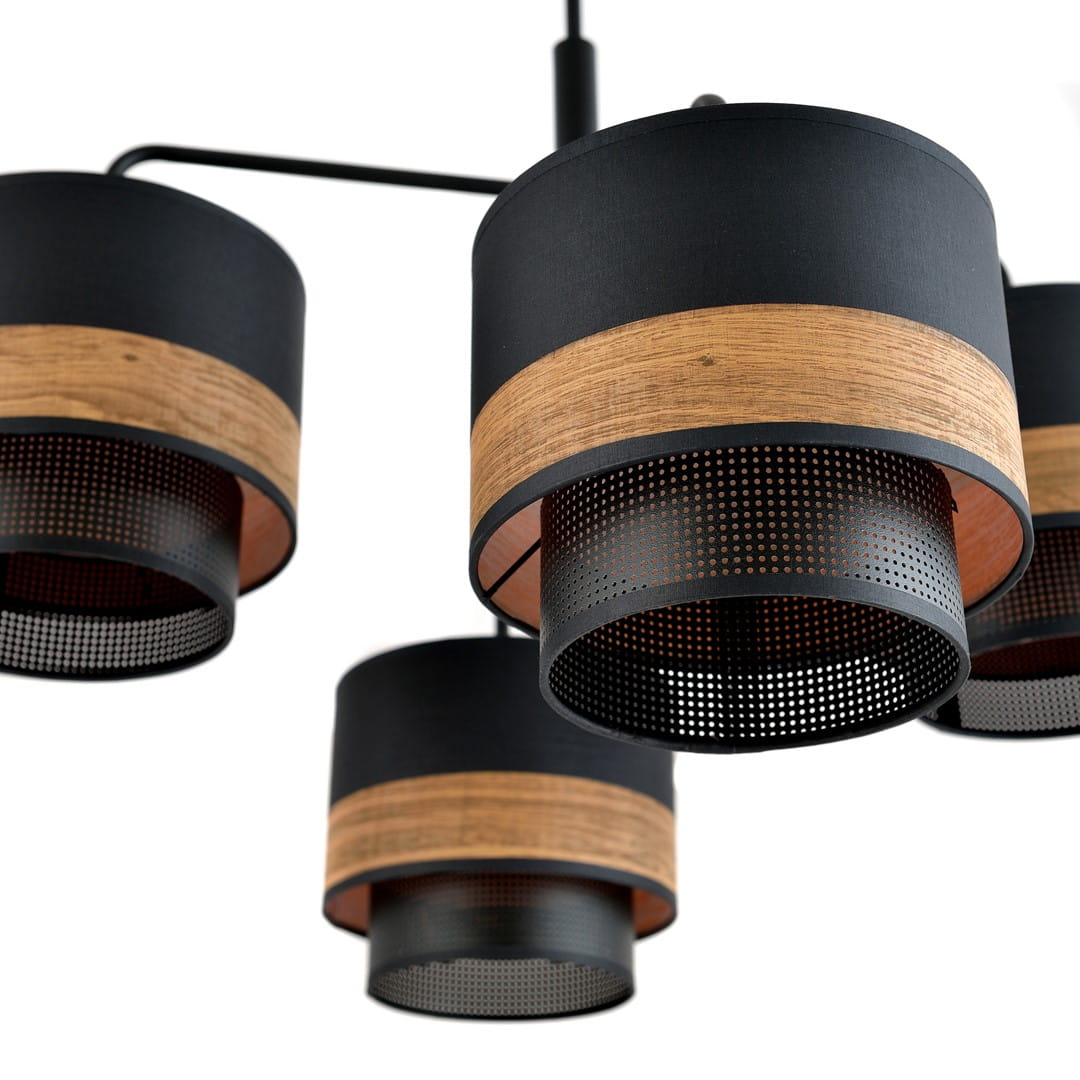 Wybierając ARIGATO 4 WOOD BLACK, inwestujesz w jakość i wyjątkowy styl. Lampa nie tylko doskonale rozjaśni Twoje wnętrza, ale także przyczyni się do stworzenia przytulnej i przyjemnej atmosfery. Dzięki dostępności w różnych abażurach - czarnym, białym oraz imitującym drewno, łatwo dopasujesz ją do swojego stylu. Odkryj, jak przytulność oraz estetyka ARIGATO 4 WOOD BLACK wprowadzą nową jakość do Twojego domu i pozwól, by światło tej lampy uczyniło codzienne chwile jeszcze piękniejszymi.