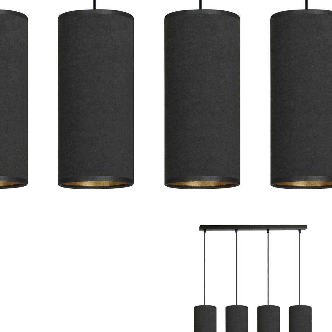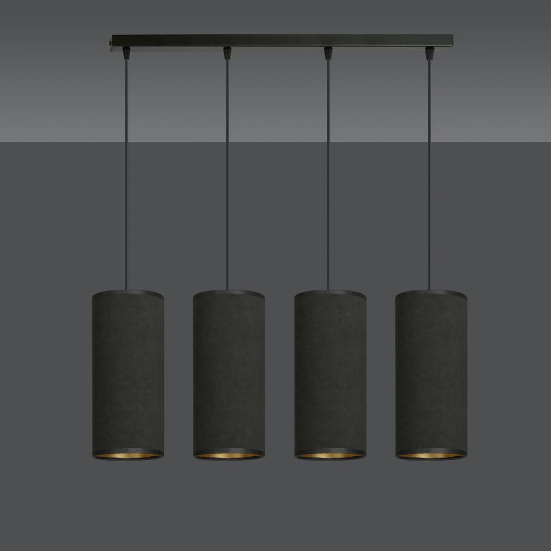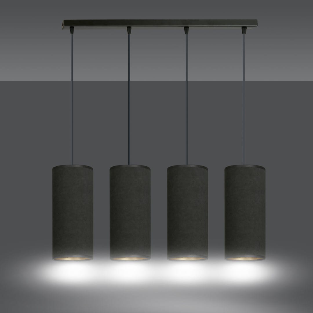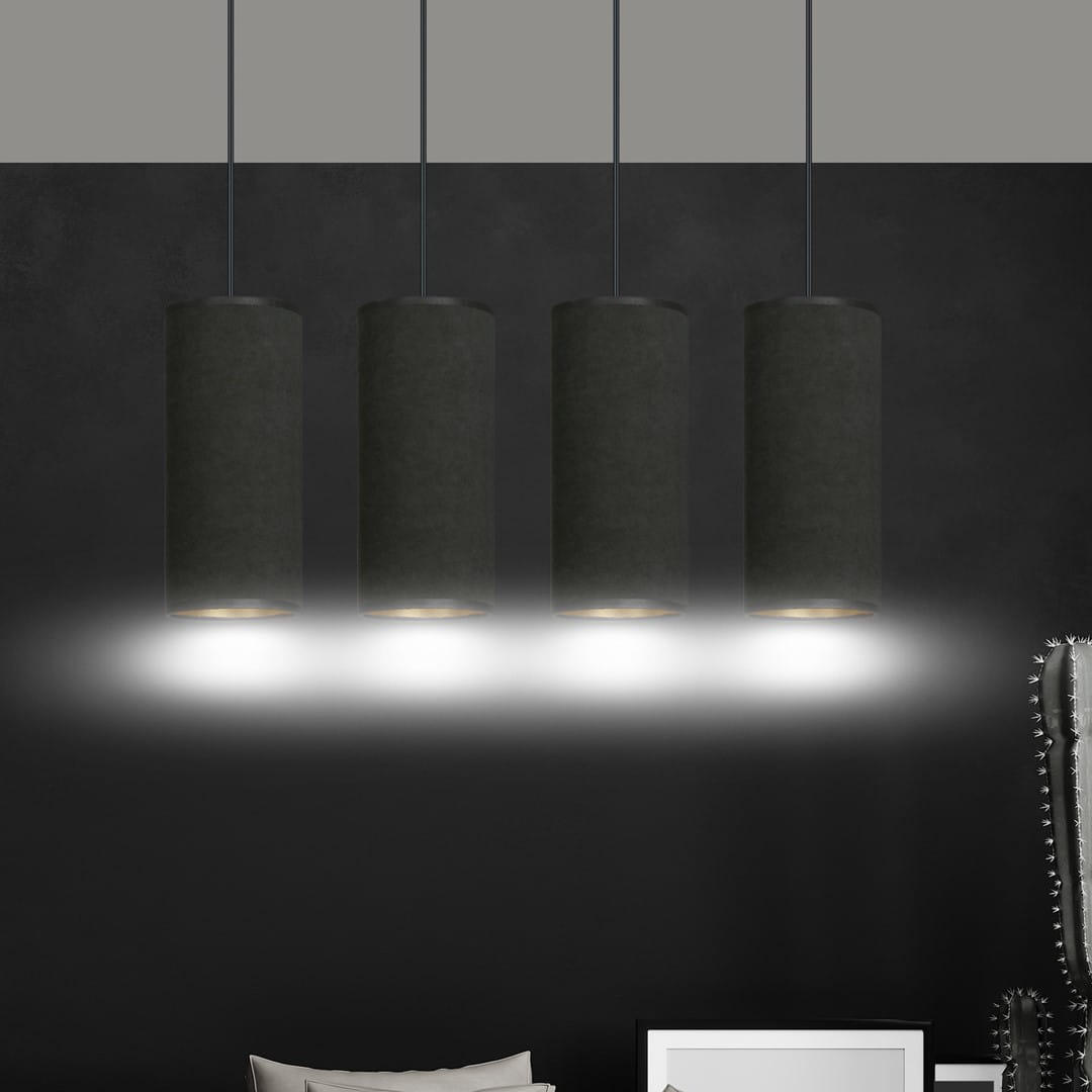 Lampa BENTE 4 BL BLACK to wyraz nowoczesnego stylu, który wprowadza elegancję do każdego wnętrza. Jej abażur, wykonany z trwałego materiału o welurowej fakturze, nie tylko przykuwa wzrok, ale także tworzy przytulną atmosferę dzięki złotemu wykończeniu w środku. Regulacja długości przewodów sprawia, że możesz dostosować wysokość lampy do własnych potrzeb, co czyni ją niezwykle funkcjonalnym elementem dekoracyjnym. Bez względu na to, czy urządzasz eleganckie wnętrze w klasycznym stylu, czy też nowoczesną przestrzeń, BENTE 4 BL BLACK idealnie wpisuje się w każdy projekt aranżacyjny. Do wyboru masz różne kolory abażurów - czarny, biały, szary, zielony i różowy - co pozwala na dopasowanie lampy do indywidualnych preferencji.
