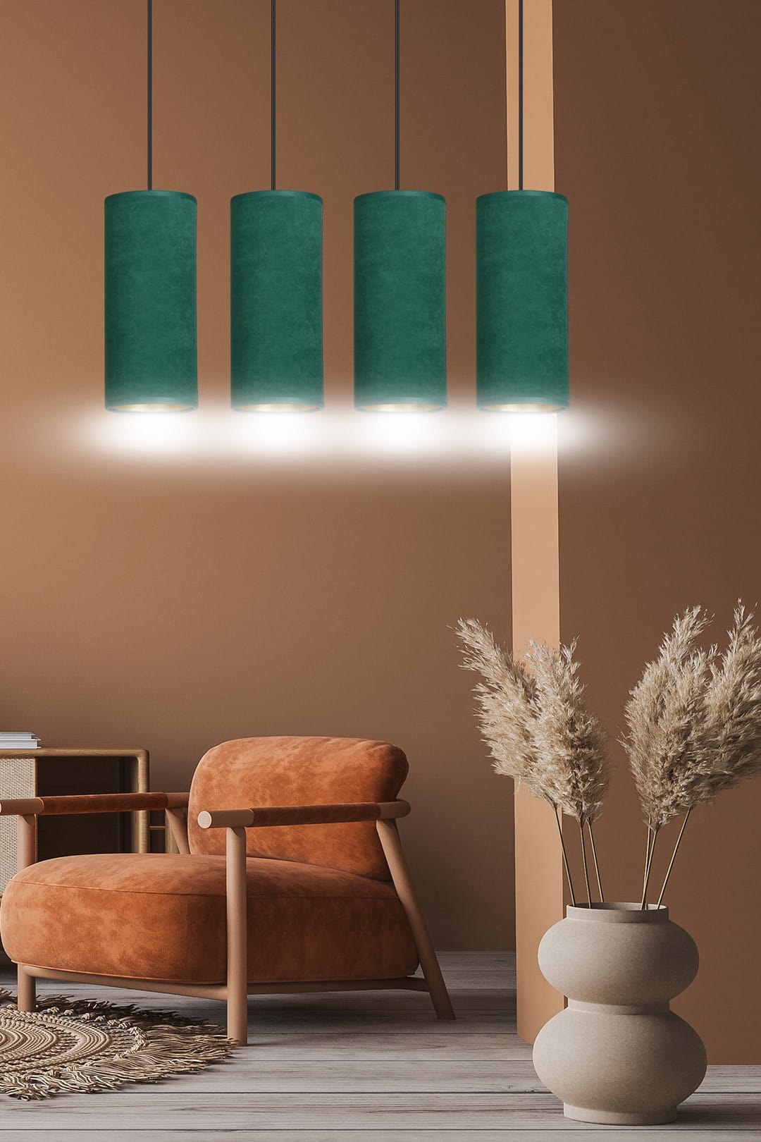 Lampa wisząca BENTE 4 BL GREEN to połączenie nowoczesnego designu i klasycznej elegancji. Jej abażur, wykonany z trwałego materiału o welurowej fakturze, zachwyca złotym środkiem, który nadaje całości wyjątkowego charakteru. Dzięki regulacji długości przewodów, masz pełną swobodę w dostosowaniu jej wysokości do warunków twojego wnętrza, co sprawia, że idealnie wkomponuje się zarówno w nowoczesne, jak i klasyczne aranżacje. Oferowana w wyborze różnych kolorów, z pewnością znajdziesz wariant, który doskonale uzupełni Twoją przestrzeń.