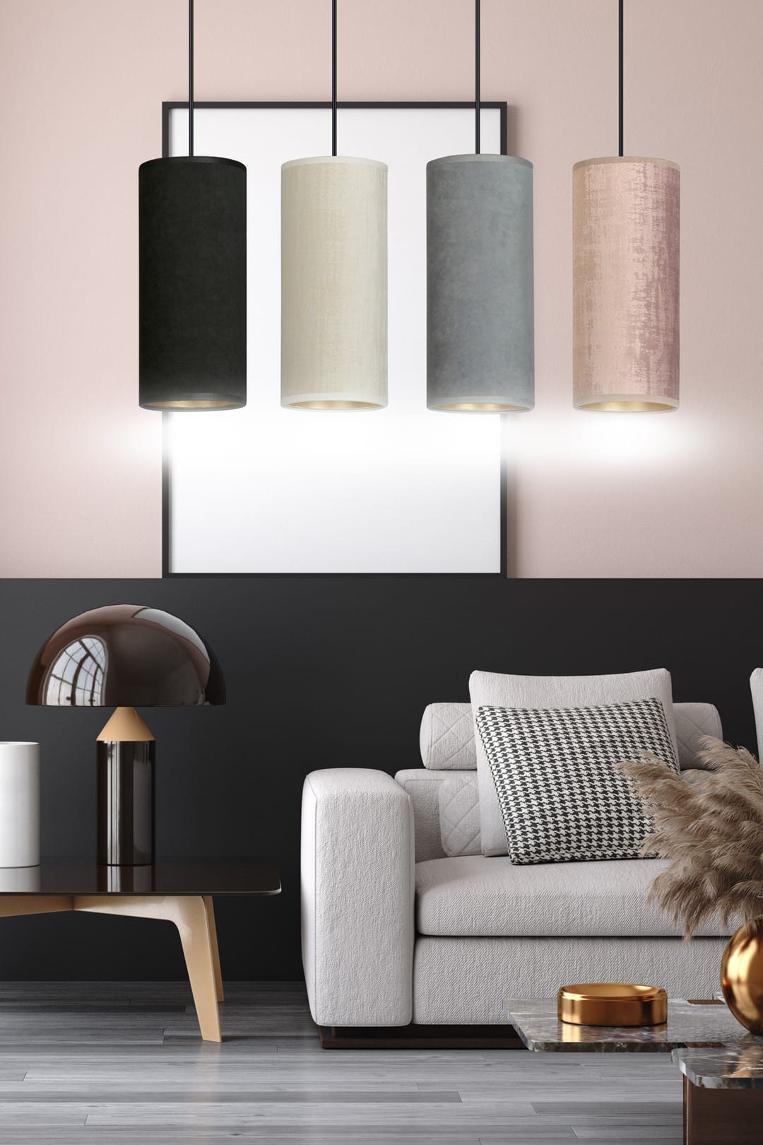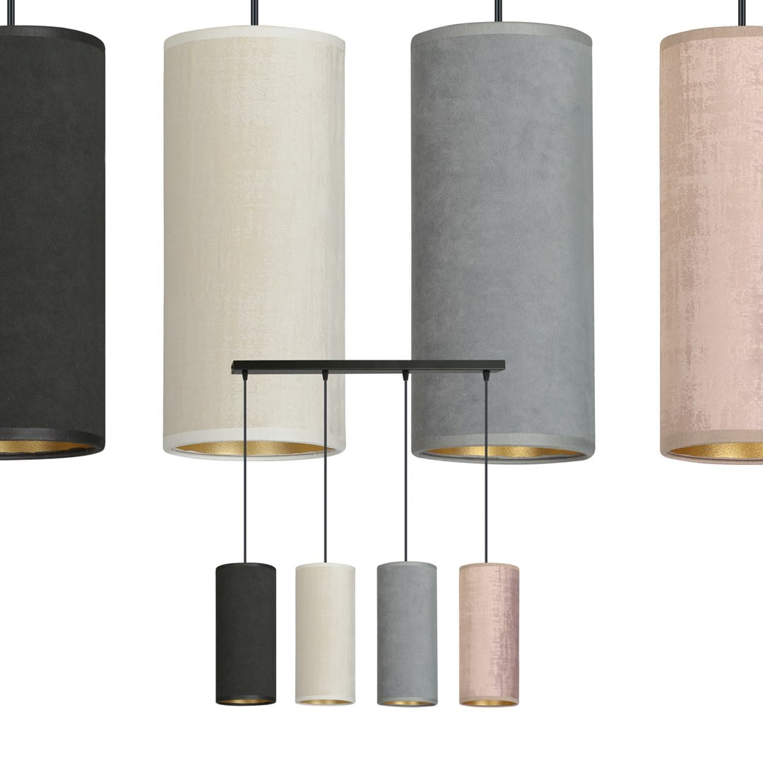 Lampa BENTE 4 BL MIX od renomowanego producenta Emibig to doskonały przykład połączenia nowoczesnego designu z klasyczną elegancją. Idealnie wpasuje się w różnorodne stylistyki wnętrz, dzięki czemu staje się wszechstronnym elementem aranżacji. Regulacja długości przewodów pozwala na personalizację instalacji, co sprawia, że możesz dostosować ją do własnych potrzeb i preferencji. Abażury, wykonane z trwałego materiału o subtelnej welurowej fakturze, zyskują dodatkowego uroku dzięki złotemu środkowi. Dostępna kolorystyka obejmuje wyszukane odcienie: czarny, biały, szary, zielony i różowy, co daje możliwość wyboru idealnego modelu, który podkreśli charakter Twojego wnętrza. Model BENTE 4 BL MIX z czterema źródłami światła zapewni odpowiednie oświetlenie w każdym pomieszczeniu, tworząc przytulną atmosferę.