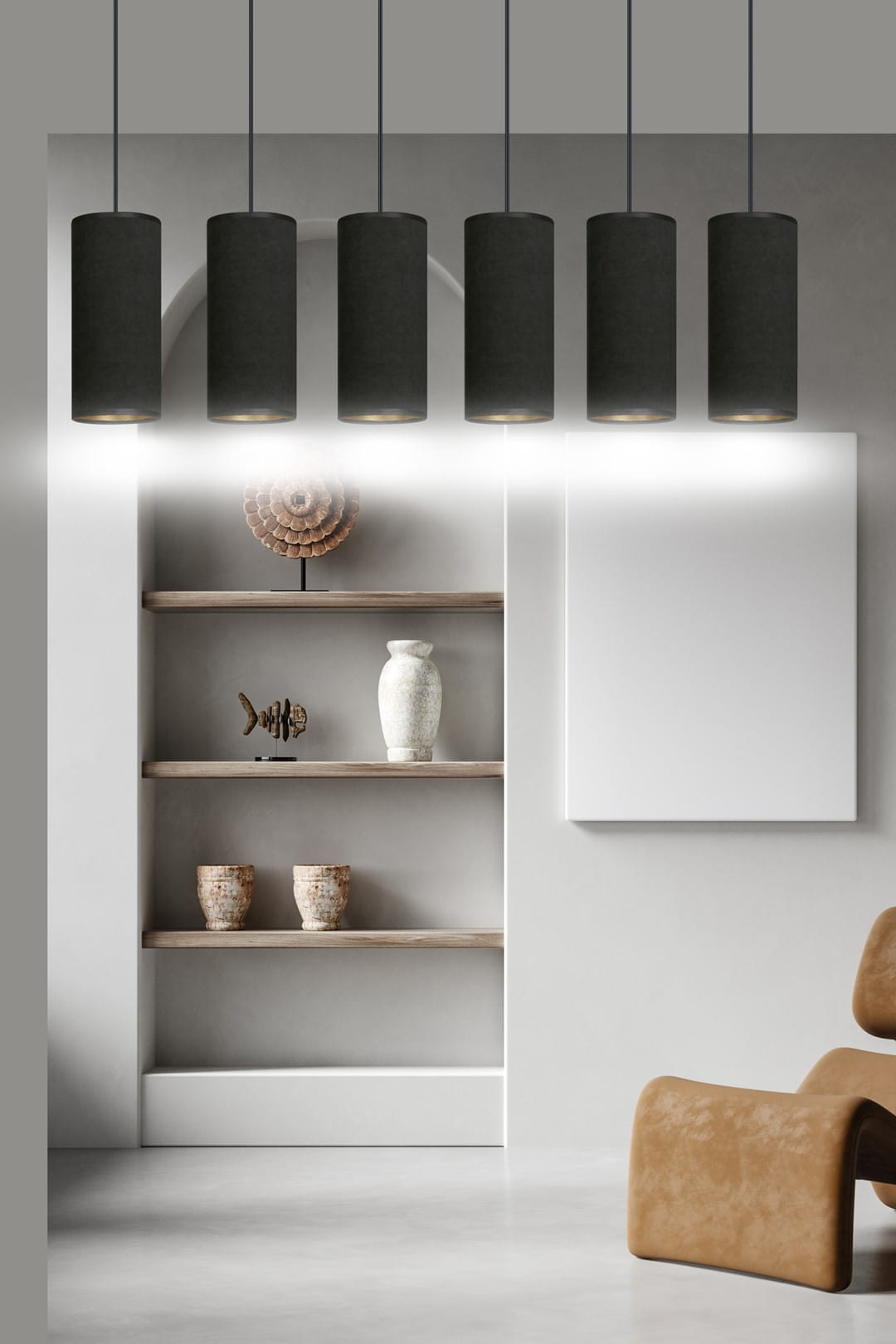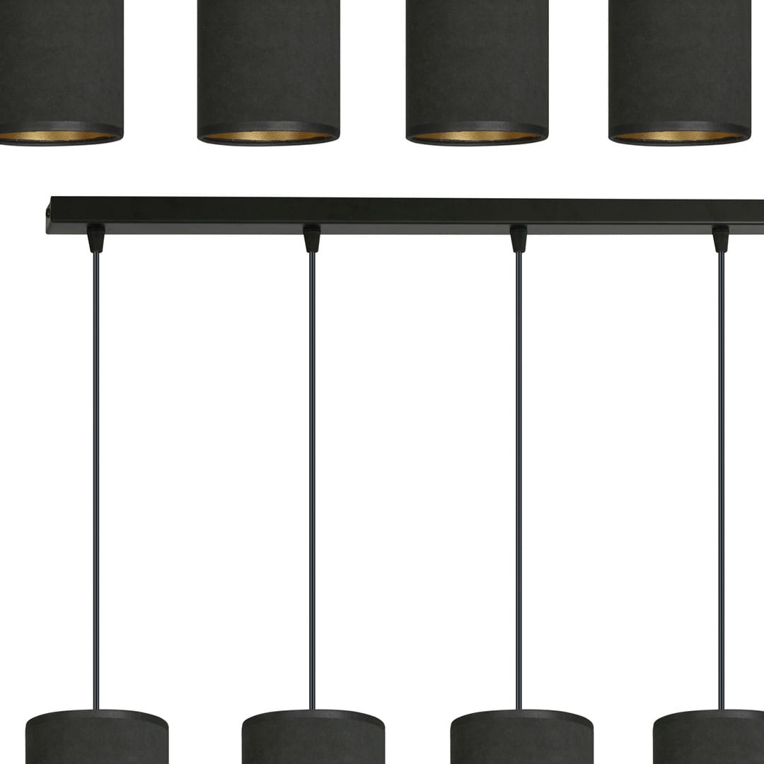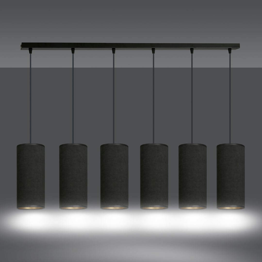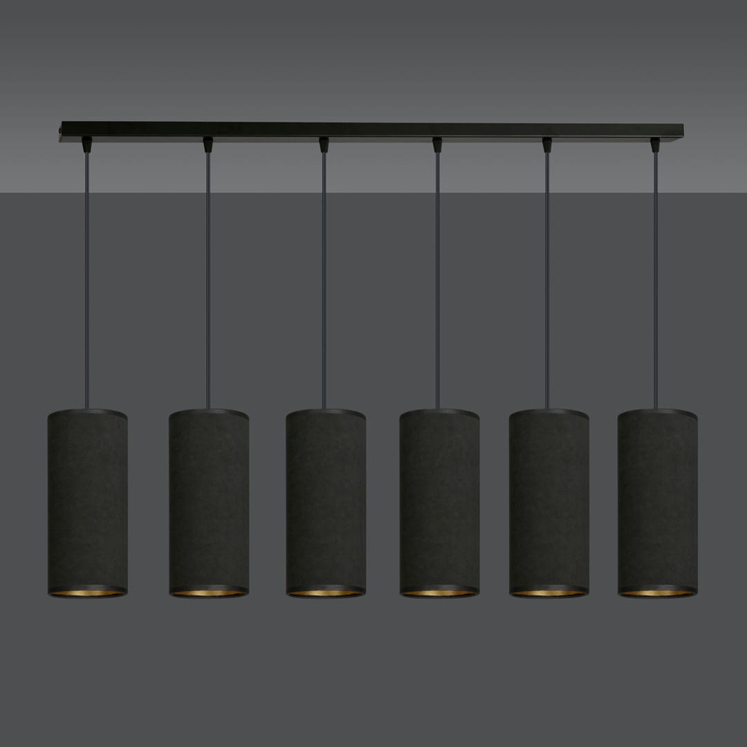 Lampa wisząca BENTE 6 BL BLACK, stworzona przez polskiego producenta Emibig, to idealne połączenie nowoczesnego designu z klasycznymi akcentami. Jej elegancka konstrukcja i prostota sprawiają, że doskonale wpasuje się w różnorodne wnętrza, od minimalistycznych po te o złożonej aranżacji. Wysokiej jakości abażury wykonane z trwałego materiału o welurowej fakturze, z subtelnym złotym środkiem, dodają lampie niepowtarzalnego charakteru.