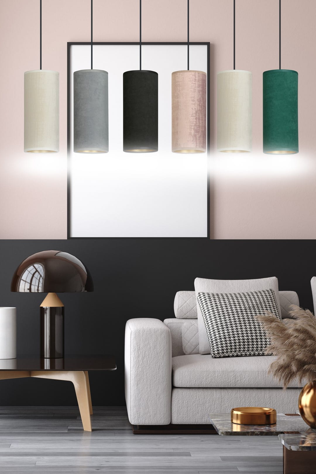 Lampa BENTE 6 BL MIX to nie tylko źródło światła, ale również stylowy element dekoracyjny, który doda charakteru każdemu wnętrzu. Dzięki regulacji długości przewodów, masz pełną swobodę w dostosowywaniu lampy do własnych potrzeb oraz wymiarów przestrzeni. Jej abażury, wykonane z trwałego materiału o welurowej fakturze, zachwycają eleganckim złotym środkiem, co sprawia, że lampa emanuje luksusem i klasą. Wybierz spośród dostępnych kolorów: czarnego, białego, szarego, zielonego i różowego, aby idealnie wpasować się w aranżację swojego wnętrza. Dzięki prostej konstrukcji, BENTE 6 BL MIX odnajdzie się zarówno w nowoczesnych, jak i klasycznych przestrzeniach, a dostępność modeli z 1, 3 lub 4 źródłami światła zapewnia możliwość wyboru optymalnego rozwiązania do Twojego domu.