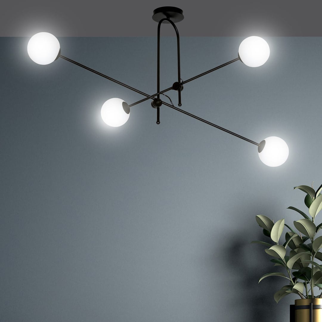 Lampa BORG 4 BLACK to idealne połączenie nowoczesności z elegancją, które wprowadza wyjątkowy nastrój do każdego wnętrza. Jej delikatne, szklane klosze dodają lekkości, a oryginalna forma przyciąga wzrok, stając się centralnym punktem każdej aranżacji. Niezależnie od tego, czy Twoje wnętrze ma charakter modernistyczny, czy tradycyjny, BORG 4 BLACK w perfekcyjny sposób dopełni całość, oświetlając duże powierzchnie zjawiskowym blaskiem. Dzięki zastosowaniu najwyższej jakości materiałów, masz pewność, że ten polski produkt nie tylko zachwyci estetyką, ale także będzie trwałym uzupełnieniem Twojego domu.