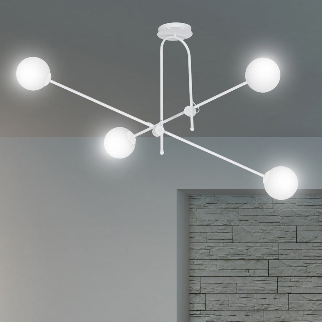 Lampa BORG 4 WHITE to połączenie nowoczesności i klasyki, które idealnie harmonizuje z różnorodnymi stylami wnętrz. Dzięki swojej **oryginalnej formie** oraz delikatnym, **szklanym kloszom**, ten model nie tylko doskonale spełnia funkcję oświetleniową, ale także wprowadza **niepowtarzalny nastrój** do każdego pomieszczenia. Posiada zdolność oświetlania dużych powierzchni, co czyni ją idealnym wyborem nad stołem czy wyspą kuchenną. Dodatkowo, lampa wykonana z **najwyższej jakości materiałów** gwarantuje trwałość i estetykę na lata. Dzięki różnym wersjom na 2, 4 lub 6 źródeł światła, BORG 4 WHITE można z łatwością dostosować do swoich potrzeb.