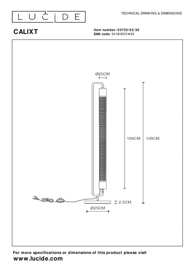 Elegancka lampa podłogowa Lucide CALIXT 05733/02/30