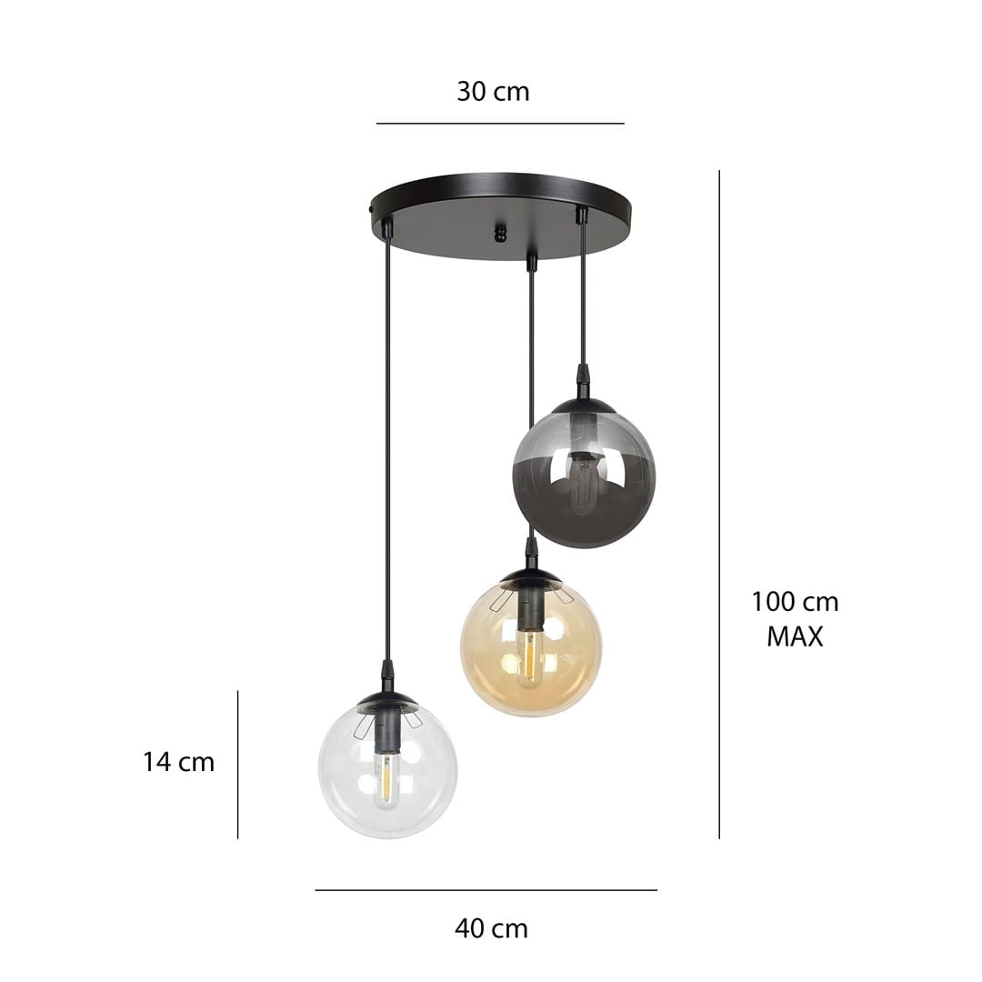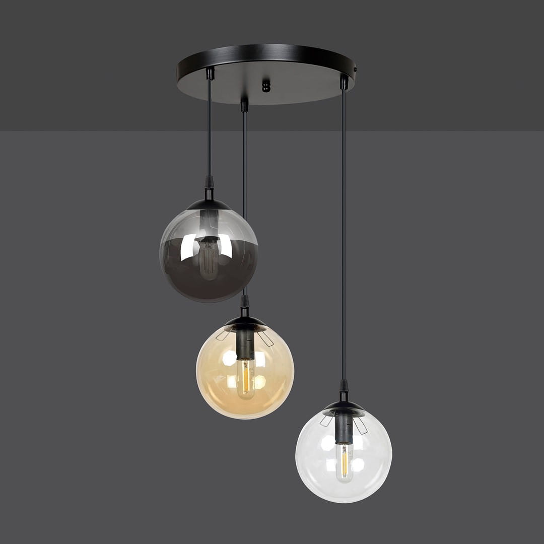 Przedstawiamy COSMO 3 BL PREMIUM MIX - lampę wiszącą, która odmieni każde wnętrze. Seria COSMO zachwyca swoim **minimalistycznym stylem**, który doskonale wpisuje się w najnowsze trendy wnętrzarskie, jednocześnie emanując ponadczasową elegancją. Dzięki **wysoce estetycznym szklanym kloszom**, lampy z tej serii nie tylko zapewniają **doskonałe doświetlenie** pomieszczenia, ale także stają się wyjątkowym elementem dekoracyjnym. Różnorodność kolorów kloszy daje Ci możliwość aranżacji przestrzeni według własnych upodobań, a polska jakość wykonania zapewnia trwałość i niezawodność.
