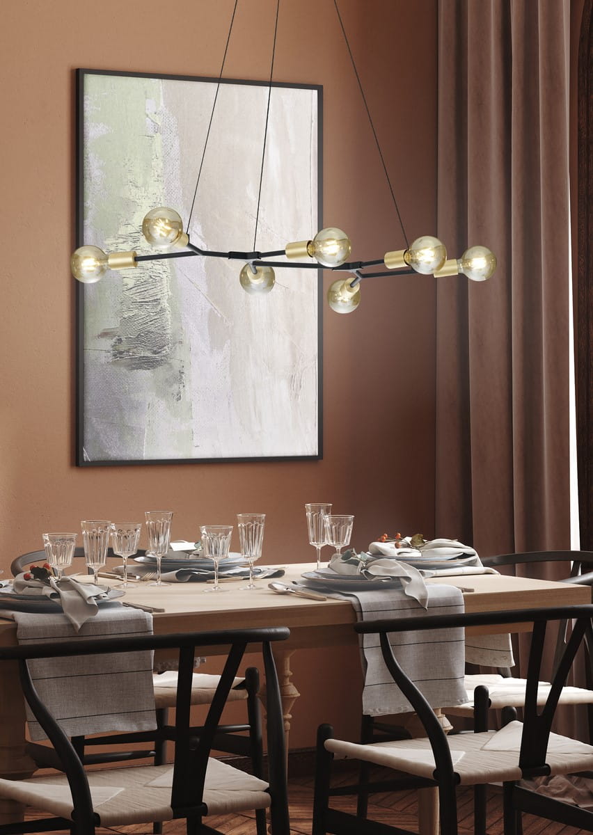 - Wspaniale sprawdzi się w salonie, zawieszona nad stołem, dodając elegancji i stylu do rodzinnych spotkań.