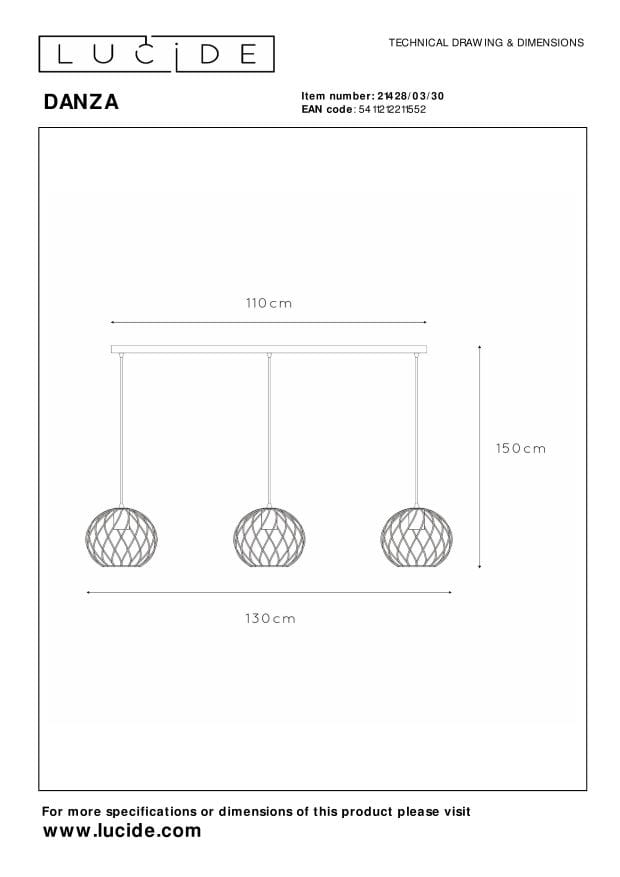 Elektryzujący Design Lampy Wiszącej Lucide DANZA 21428/03/30