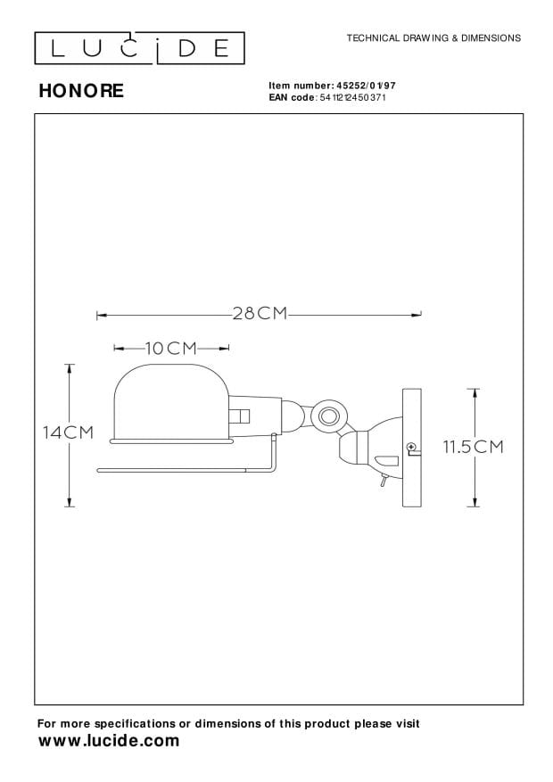 Kinkiet HONORE 45252/01/97 od renomowanego producenta Lucide to doskonały wybór dla osób poszukujących wyjątkowego oświetlenia, które wyróżnia się elegancją i funkcjonalnością. Jego **wysokość** wynosząca **115 mm** oraz **szerokość** **105 mm** sprawiają, że idealnie komponuje się w mniejszych przestrzeniach, nadając im przytulności. Klosz o wysokości **90 mm** i średnicy **105 mm** wykonany z wysokiej jakości metalu, w odcieniach brązu i szarości, staje się prawdziwą ozdobą każdej ściany. Z maksymalną mocą źródła **25 W** oraz zastosowaniem trzonka **E14**, kinkiet ten zapewnia odpowiednie oświetlenie do różnorodnych wnętrz, zachowując jednocześnie bezpieczeństwo użytkowania dzięki klasie IP **20**, co czyni go idealnym rozwiązaniem również w miejscach o ograniczonej ekspozycji na wilgoć.