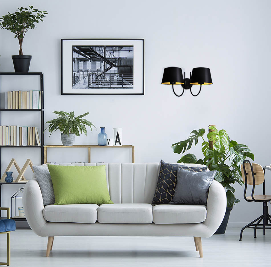 Minimalizm i elegancjaPojedynczy kinkiet ścienny daje za mało światła, a żyrandol zbyt wiele? Szukasz czegoś pomiędzy tymi opcjami? Chciałbyś minimalistycznego i jednocześnie eleganckiego oświetlenia do swojego wnętrza? Lampa ścienna K-4338 to rozwiązanie idealne dla Ciebie! Dwa abażury, w kolorze czarnego matu ze złotym wnętrzem, w kształcie ściętych stożków, umieszczone na końcach, wygiętych w łuk, prętów. Zastosowano tu dwie oprawki na gwint E27, czyli duży gwint. Dzięki temu dobierzesz żarówkę taką, jaka będzie Ci najbardziej pasować. Wybierz moc, barwę światła oraz kształt żarówki.