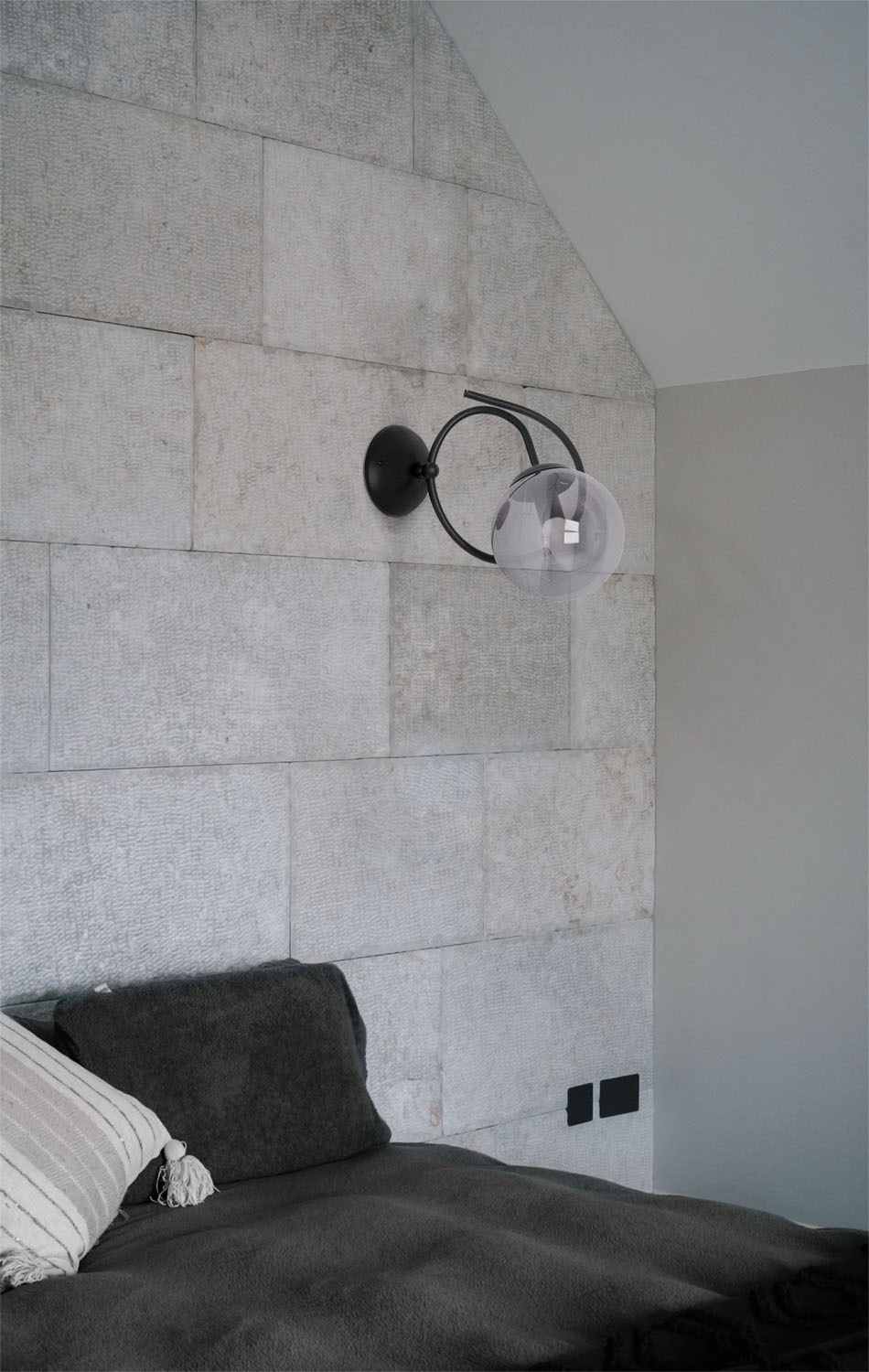 Kinkiet wyposażony w ciemny, grafitowy klosz w kształcie kuli, dodaje pomieszczeniu wyjątkowego charakteru. Ciemna barwa doskonale rozprasza światło, tworząc przytulną aurę. Może być on umieszczony na ścianie obok łóżka, nad biurkiem lub w korytarzu, dodając nie tylko funkcjonalnego oświetlenia, ale także stylowego akcentu.