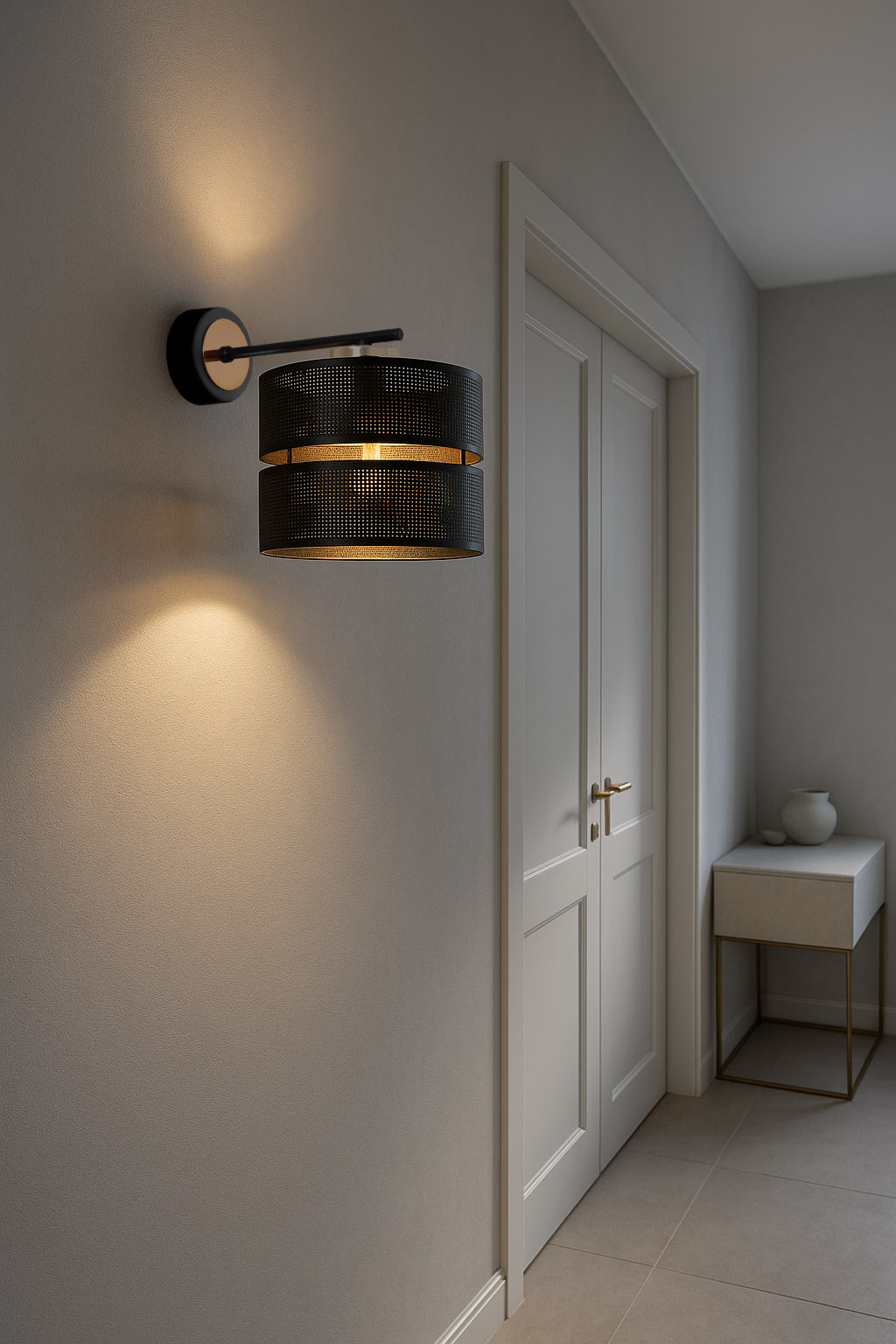 Kinkiet K-5504 MALAVI – eleganckie oświetlenie do nowoczesnych wnętrzKinkiet K-5504 z serii MALAVI to idealna propozycja dla osób ceniących połączenie stylowego designu z funkcjonalnością. Czarno-złota metalowa konstrukcja nadaje mu wyjątkowego charakteru, dzięki czemu doskonale wpisuje się w nowoczesne, industrialne i klasyczne aranżacje wnętrz. Minimalistyczny abażur subtelnie rozprasza światło, tworząc przytulną atmosferę. Kinkiet świetnie sprawdzi się w salonie, sypialni, a także jako dodatkowe oświetlenie dekoracyjne.