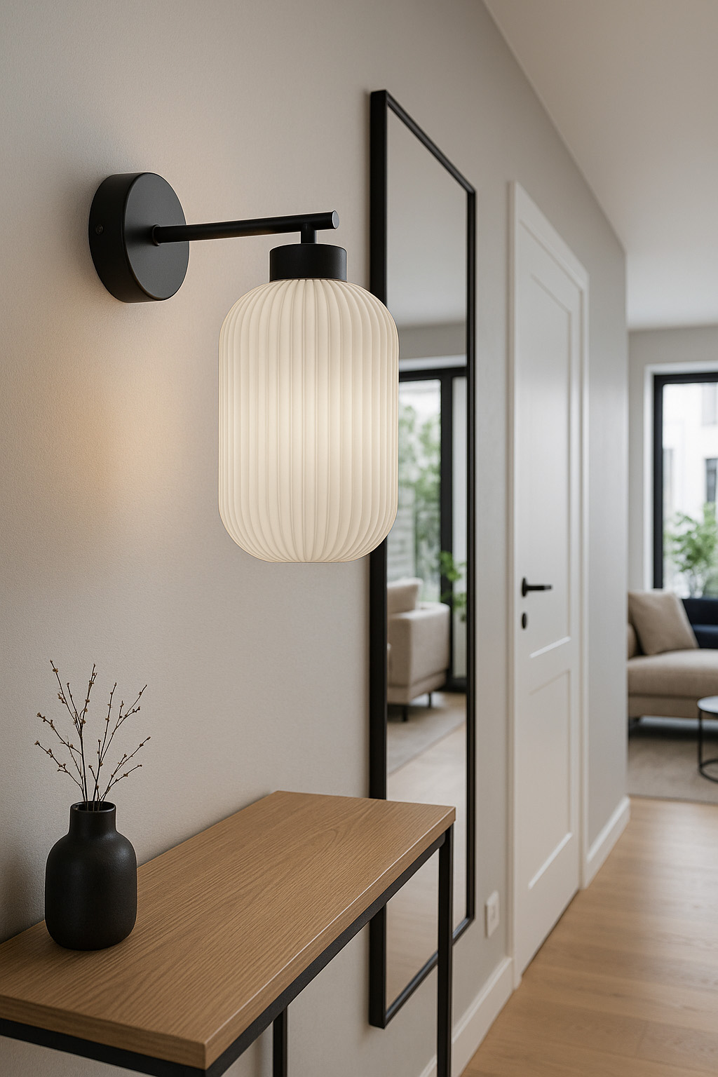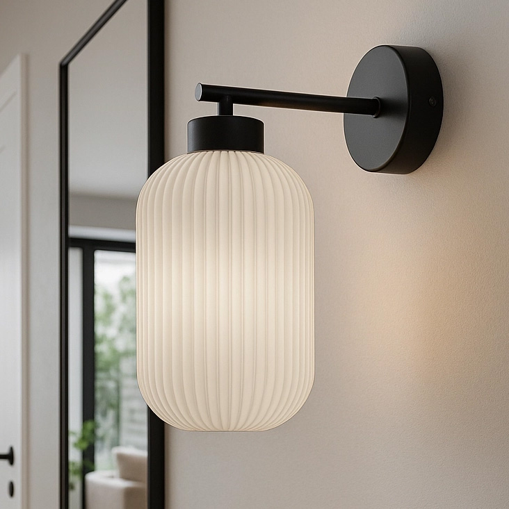 Subtelny i elegancki kinkiet z ryflowanym kloszemKinkiet ścienny z ryflowanym kloszem to propozycja dla tych, którzy cenią sobie nie tylko funkcjonalność, ale również wyjątkowy design. Jego subtelna forma, inspirowana skandynawską prostotą i ponadczasową elegancją, sprawia, że idealnie wpasuje się zarówno w nowoczesne, jak i bardziej klasyczne aranżacje.