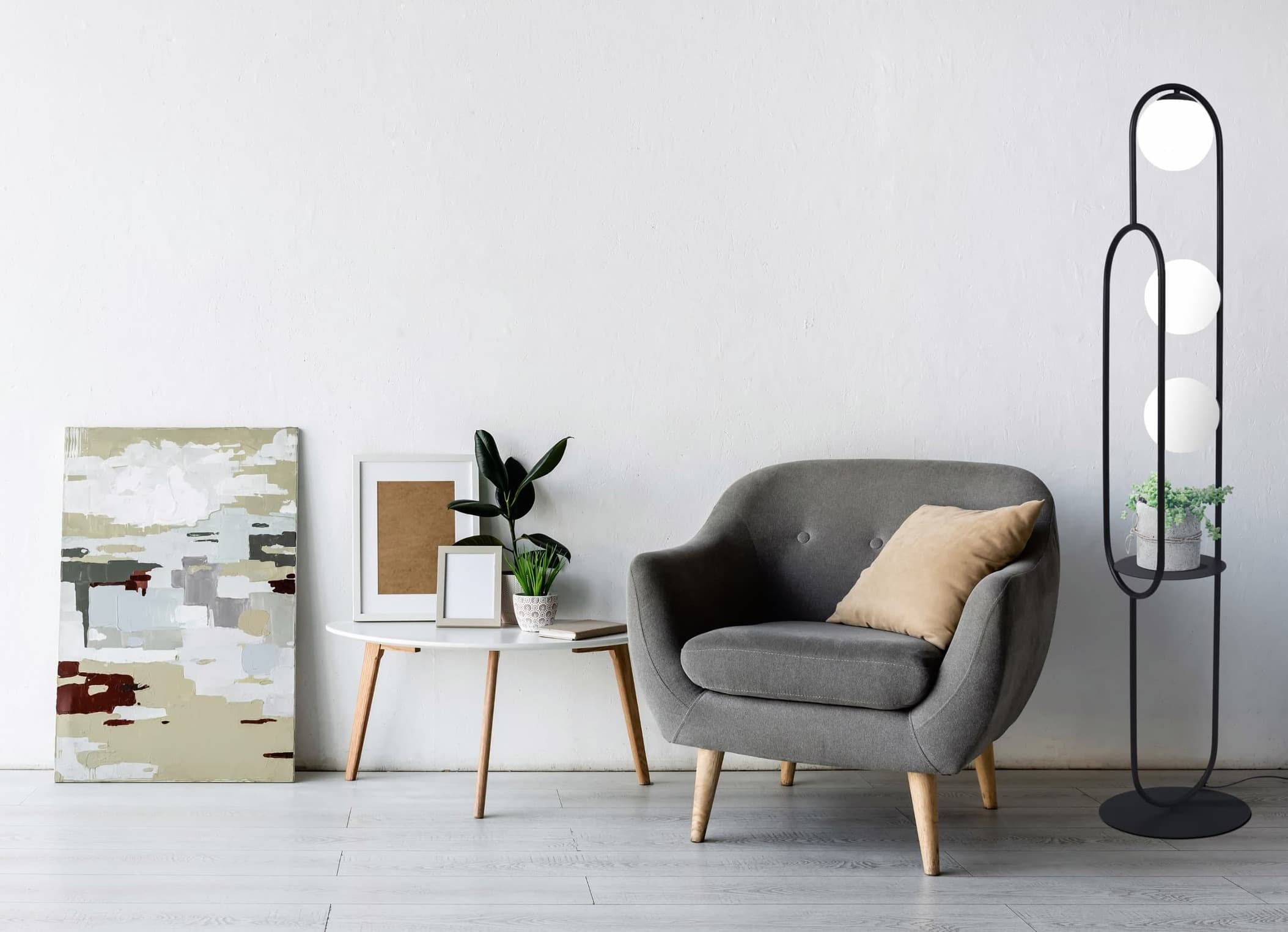 Lampa stojąca z półką czyli design i funkcjonalność