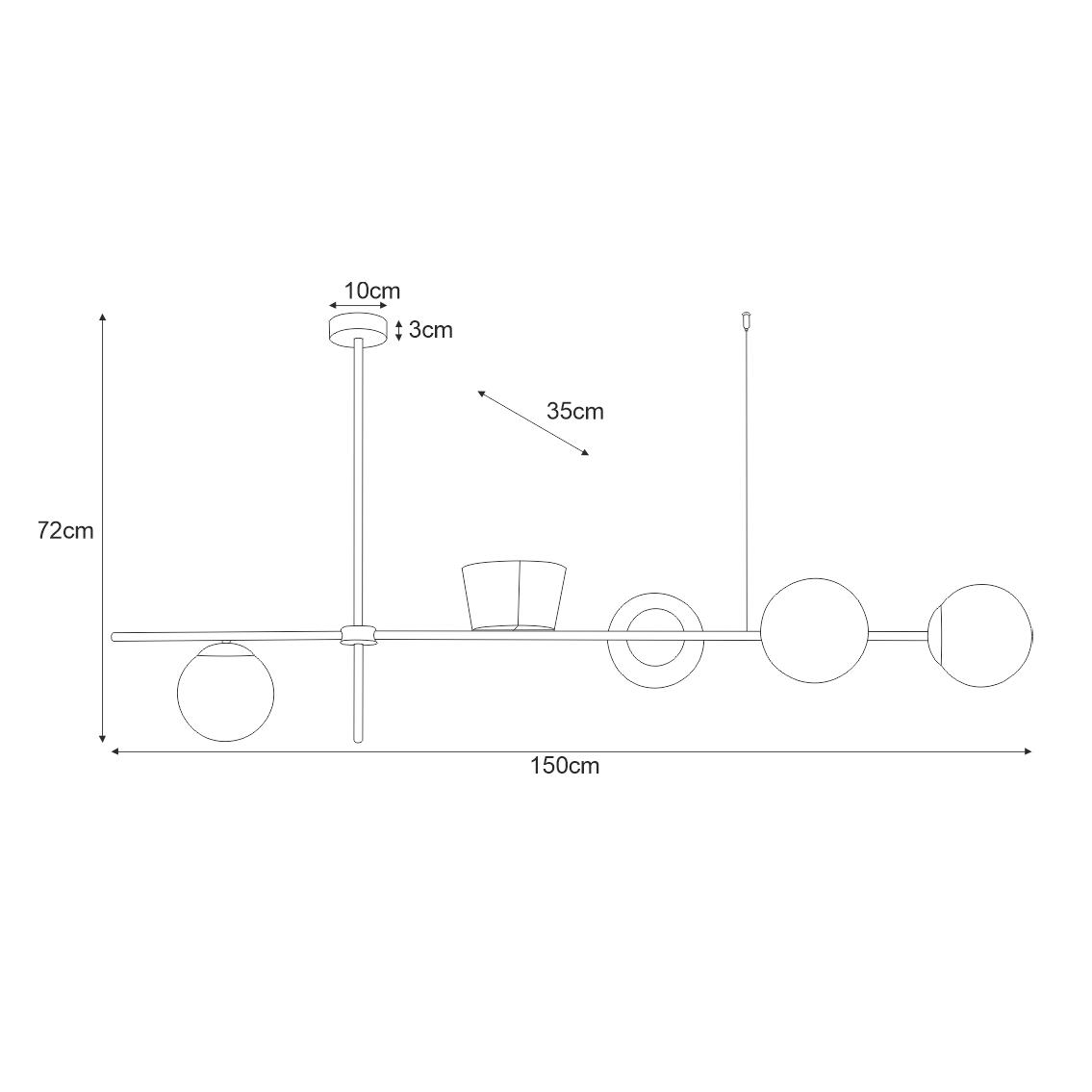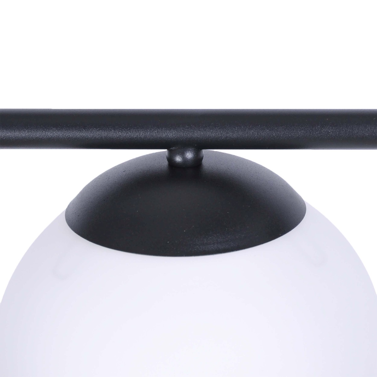 Klasyka spotyka styl loftWyznacznikiem serii VUELTA są szklane klosze uformowane z mlecznego szkła - jest to odwołanie do tradycyjnych technik wzorniczych w oświetleniu. Białe kule wzorowo przyozdabiają całą konstrukcję dodając szykownego wydźwięku. Szkielet lampy stanowią dwa czarne, metalowe ramiona, skrzyżowane ze sobą pod kątem prostym. Przywodzą one na myśl statyw lub surowe pręty wystające z sufitu w przestrzeniach pofabrycznych.Designerska lampa z kwietnikiemTa propozycja idealnie sprawdzi się nad wyspą kuchenną bądź stołem w jadalni. Dzięki poprzecznej budowie podkreśli wydłużone blaty i odpowiednio je doświetli. Swoją nienachalną formą nie przytłoczy aranżacji wnętrza, ale dopełni ją, tworząc ciekawy efekt w pomieszczeniu.