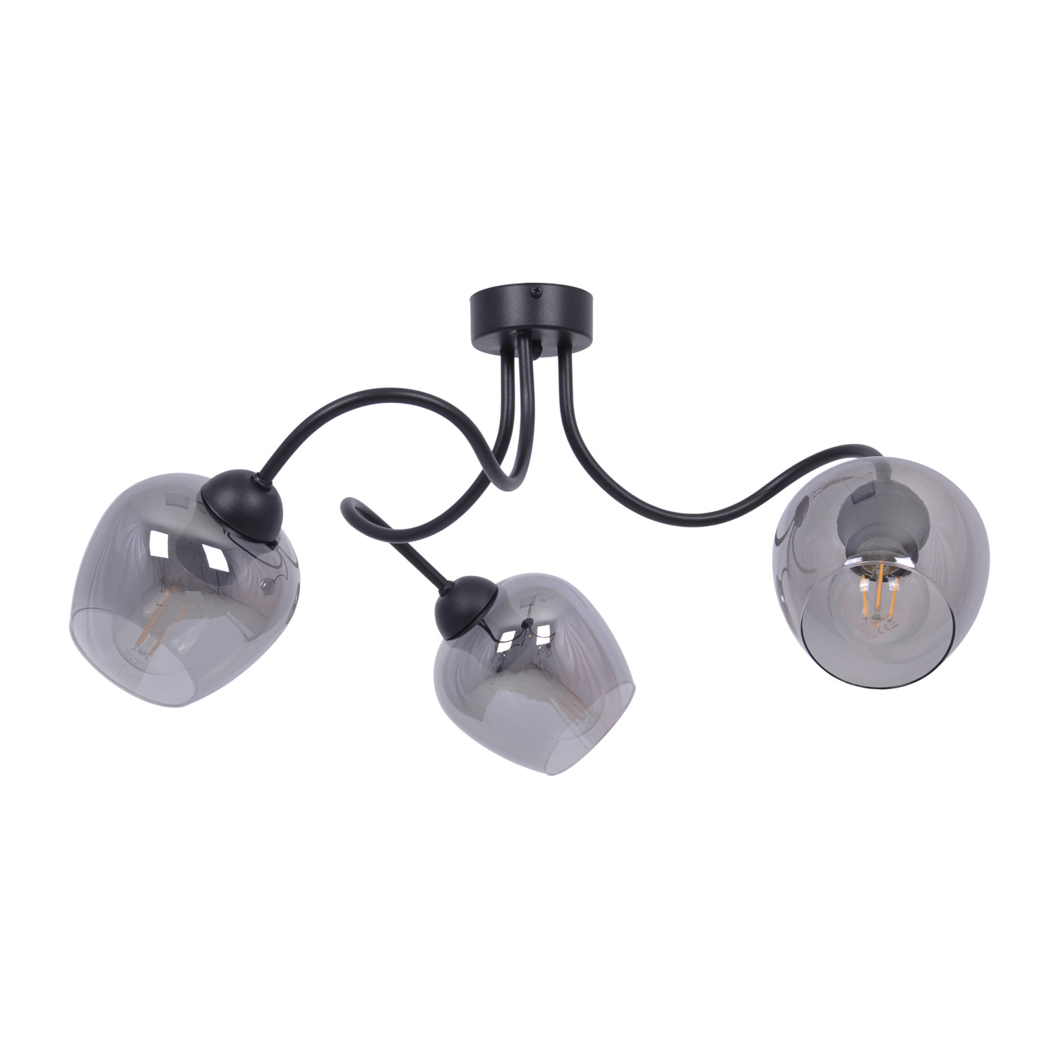 Jej grafitowe klosze, w kształcie kielichów stanowią centralny punkt lampy, dodając wyrazistości i charakteru. Kolor grafitowy nadaje oświetleniu subtelny, ale zarazem nowoczesny wygląd. Klosze wykonane ze szkła doskonale rozpraszają światło, tworząc harmonijne i równomierne oświetlenie w całym pomieszczeniu. Lampa sufitowa prezentuje minimalistyczną formę, która doskonale pasuje do nowoczesnych, jak i klasycznych przestrzeni. Jej czyste linie i elegancka konstrukcja tworzą wyrafinowany wygląd, który doda stylu Twojemu wnętrzu. Jej czarna konstrukcja emanuje ponadczasowym designem, który idealnie komponuje się z różnymi stylami dekoracyjnymi. Dodaje pomieszczeniu wyjątkowej elegancji, podkreślając jego charakter.
