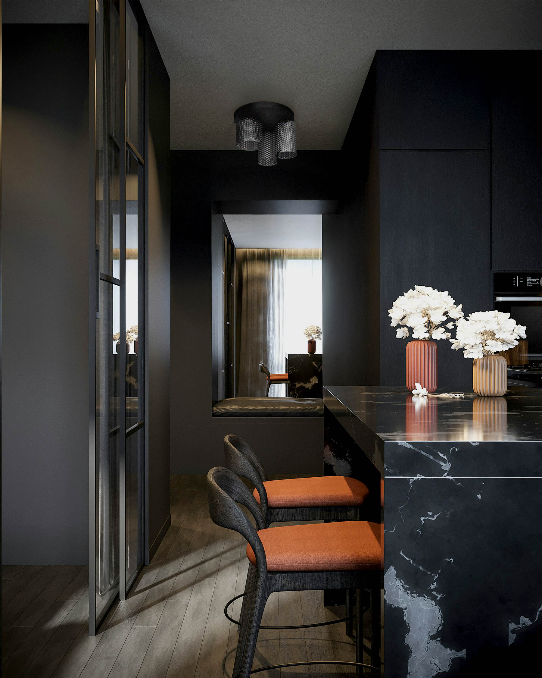 Energooszczędność i możliwość personalizacji światłaLampa K-5635 została przystosowana do trzech żarówek E27, które można z łatwością wymieniać, dostosowując moc i barwę światła do własnych preferencji. Maksymalna moc każdej żarówki to 15W LED, co przekłada się na znaczną oszczędność – zużywa nawet o 80% mniej energii niż tradycyjne żarówki. Barwa światła zależy od wybranej żarówki – ciepłe światło podkreśli przytulność wnętrza, a zimne nada mu nowoczesnego charakteru. Dodatkowo grafitowe szkło kloszy może subtelnie zmieniać swój odcień, w zależności od zastosowanego źródła światła.Idealne oświetlenie do różnych pomieszczeńDzięki uniwersalnemu stylowi i funkcjonalnej formie, lampa K-5635 świetnie sprawdzi się w wielu wnętrzach. Można ją zamontować w kuchni, jadalni, korytarzu, sypialni lub nad stołem czy wyspą kuchenną, gdzie stworzy wyjątkowy klimat. Nowoczesna estetyka lampy doskonale komponuje się z industrialnymi, minimalistycznymi oraz skandynawskimi aranżacjami, dodając im stylu i elegancji.