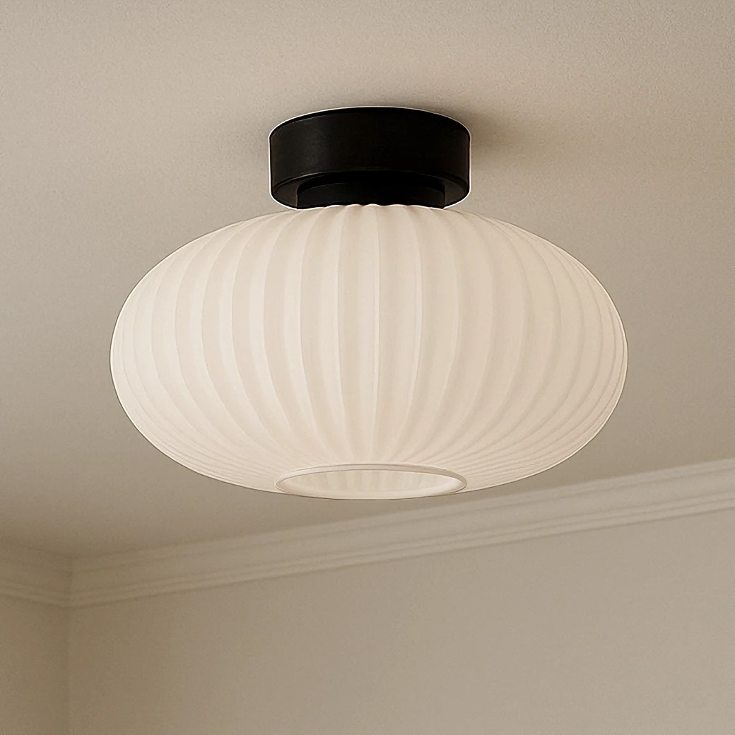 Lampa K-5671 wyróżnia się czarną, metalową armaturą malowaną proszkowo oraz białym, ryflowanym kloszem w kształcie spłaszczonej kuli, który równomiernie rozprasza światło. Dzięki kompaktowym wymiarom (wysokość 20 cm, szerokość 30 cm) i prostej, ale eleganckiej formie pasuje doskonale do różnych pomieszczeń, w tym kuchni, jadalni czy nad stołem kuchennym. Dzięki zastosowaniu żarówek LED E27 o mocy do 15W, lampa zapewnia oszczędność energii, zużywając nawet do 80% mniej energii niż tradycyjne żarówki.