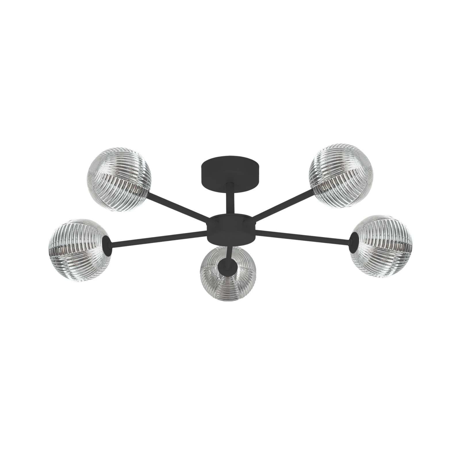 K-5717 to lampa wykonana z solidnej, metalowej armatury, która została pokryta czarnym, malowanym proszkowo wykończeniem. Dzięki temu, lampa zyskuje nowoczesny wygląd i jest odporna na uszkodzenia mechaniczne. Szklane, ryflowane klosze w kolorze grafitowym nadają lampie subtelną elegancję, a ich przezroczysta struktura pozwala na optymalne rozpraszanie światła, tworząc przyjemną atmosferę w każdym pomieszczeniu.