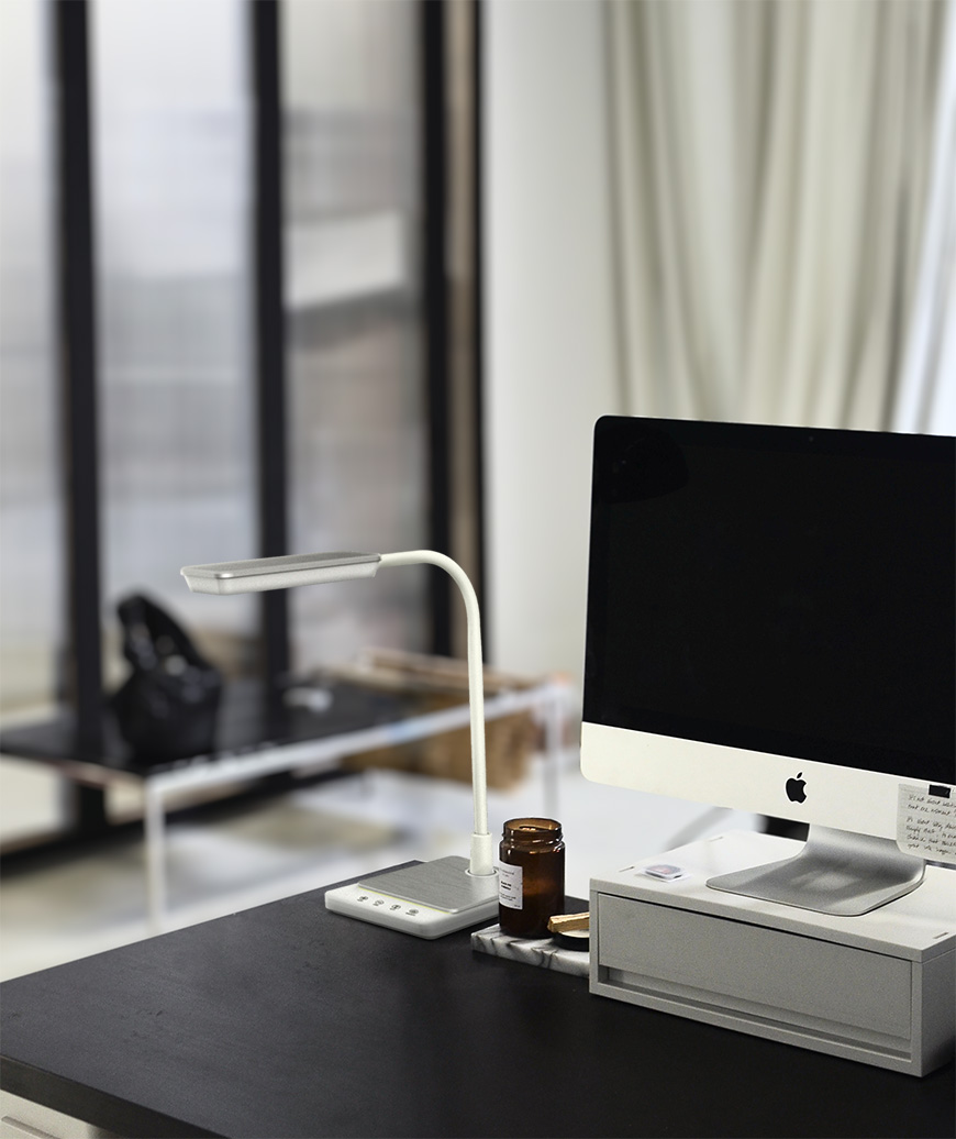 Elastyczność i dopasowanie światła do Twoich potrzebTa nowoczesna lampka biurkowa LED wyróżnia się przede wszystkim elastycznym ramieniem, które pozwala skierować światło dokładnie w wybrane miejsce. Wysoko uniesione – doświetla całą przestrzeń roboczą, a ustawione nisko – skupia światło na konkretnym punkcie, np. podczas rysowania czy pisania. Dzięki dotykowemu panelowi sterowania na podstawie lampki, możesz wygodnie zmieniać jasność i temperaturę barwową światła (3000–6000K). Pozwala to dostosować barwę światła do aktualnej pory dnia i rodzaju wykonywanych zadań – światło ciepłe do relaksu, neutralne do nauki, chłodne do precyzyjnej pracy.